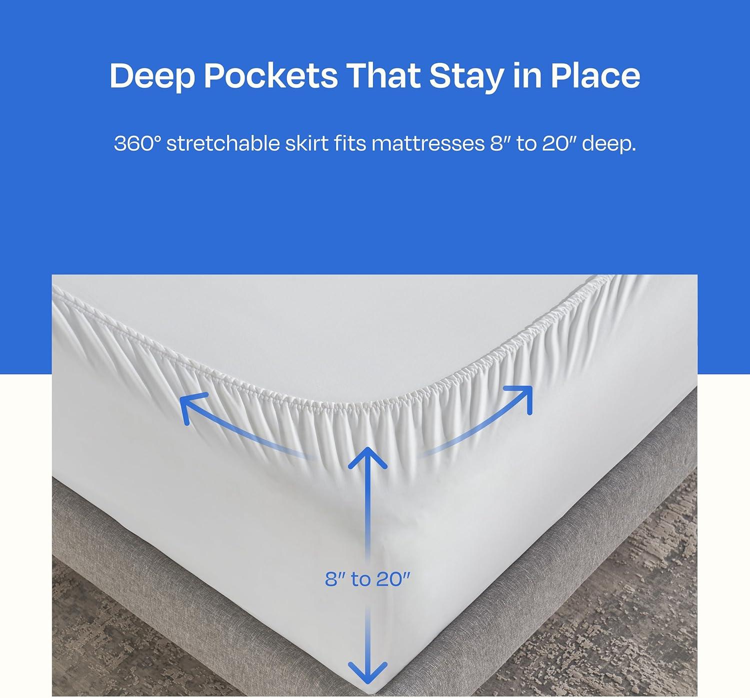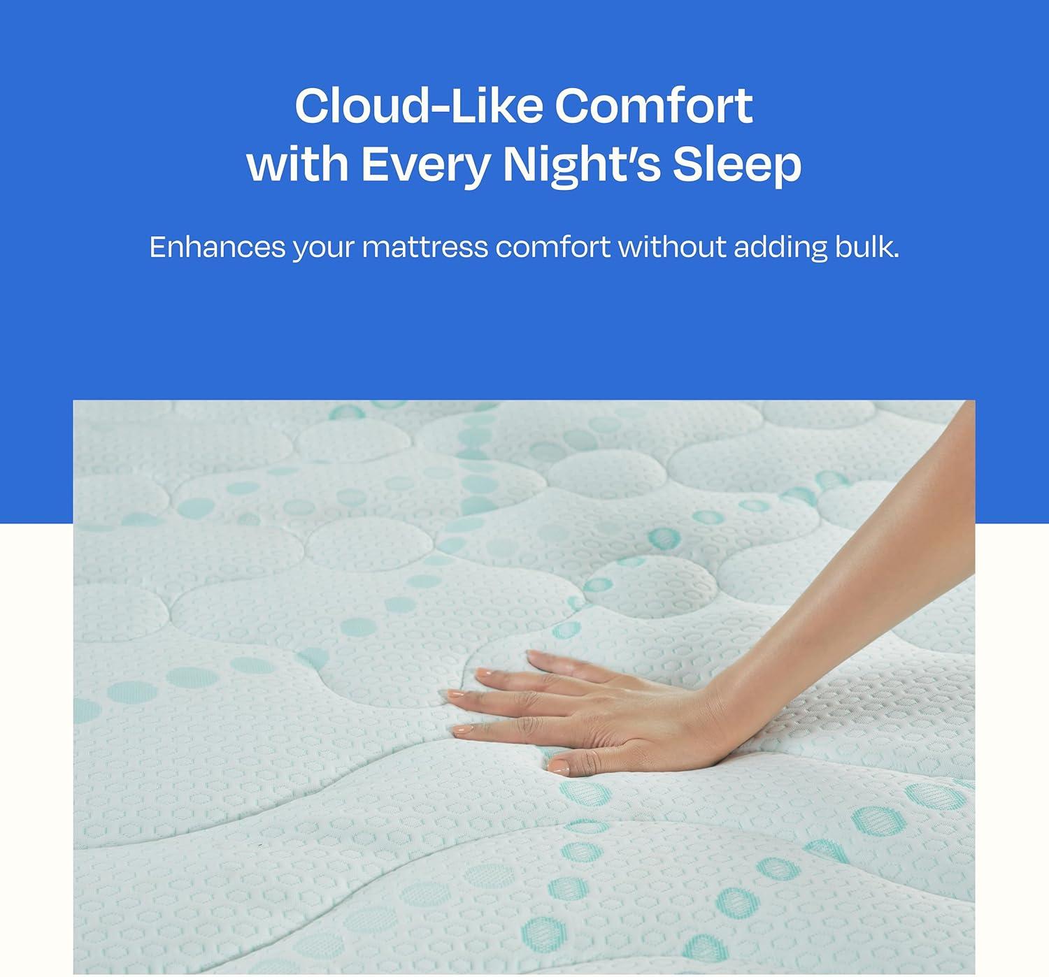 Secure Fit & Easy Maintenance: Designed to fit like a glove, our thick california king cooling mattress topper (72” W x 84” L) features a 360° stretchable drop that fits up to 20” deep pocket mattresses and stays securely in place throughout the night. Easily washable at home in your standard size washer/dryer, it fluffs right back up after machine wash and dry, ensuring continuous comfort.