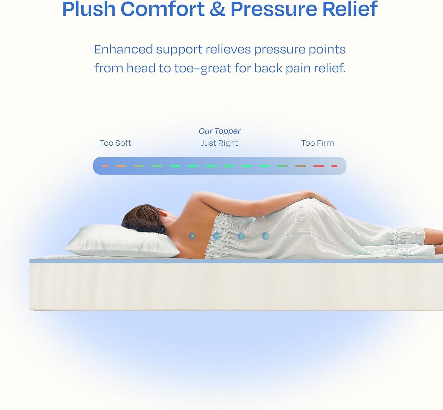 Optimal Softness for Pain Relief: Our california king pillow top mattress topper adds just the right amount of softness without compromising support. The plush fill contours to your body, easing pressure points and providing the perfect balance for back pain relief, ensuring you wake up refreshed and pain free.