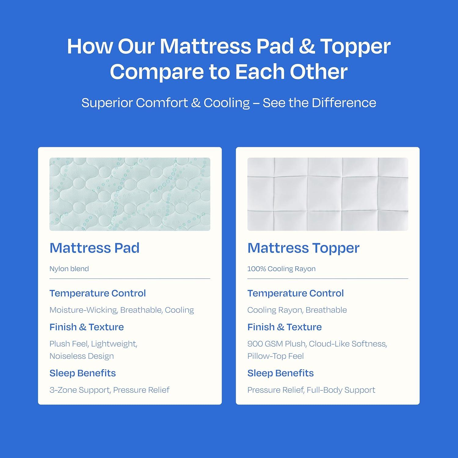 Stay Cool All Night: Say goodbye to hot, restless nights. Our cooling california king topper features 100% cooling rayon fabric, known for its breathability and moisture wicking properties. The silky soft material of this mattress topper california king size ensures you stay cool and dry, making it perfect for hot sleepers and those with foam mattresses.