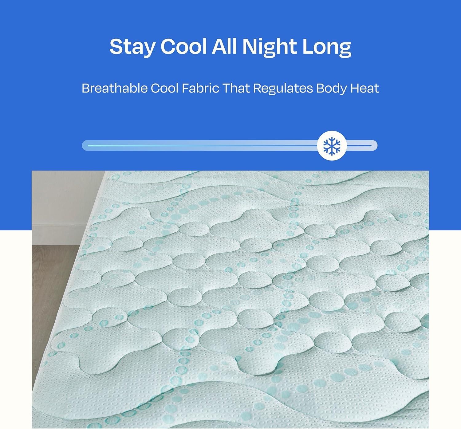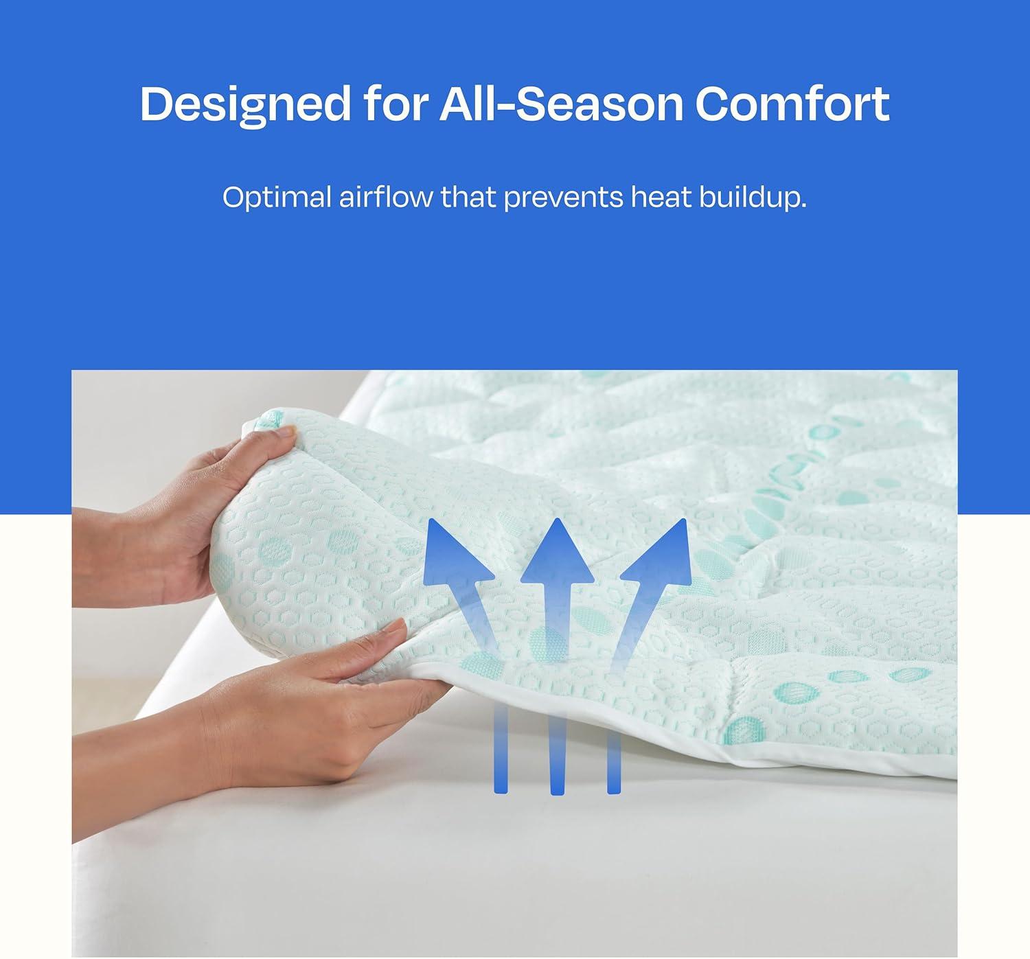Stay Cool All Night: Say goodbye to hot, restless nights. Our cooling california king topper features 100% cooling rayon fabric, known for its breathability and moisture wicking properties. The silky soft material of this mattress topper california king size ensures you stay cool and dry, making it perfect for hot sleepers and those with foam mattresses.