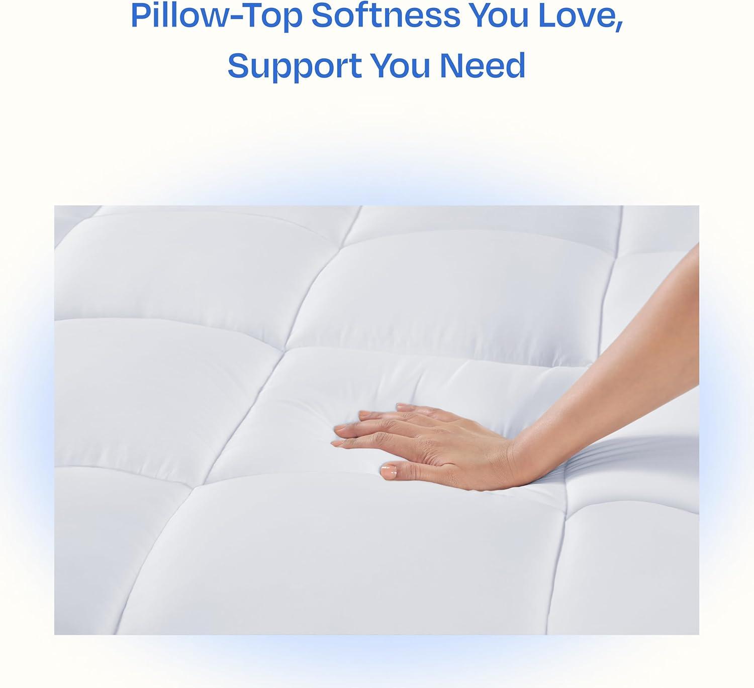 Optimal Softness for Pain Relief: Our california king pillow top mattress topper adds just the right amount of softness without compromising support. The plush fill contours to your body, easing pressure points and providing the perfect balance for back pain relief, ensuring you wake up refreshed and pain free.