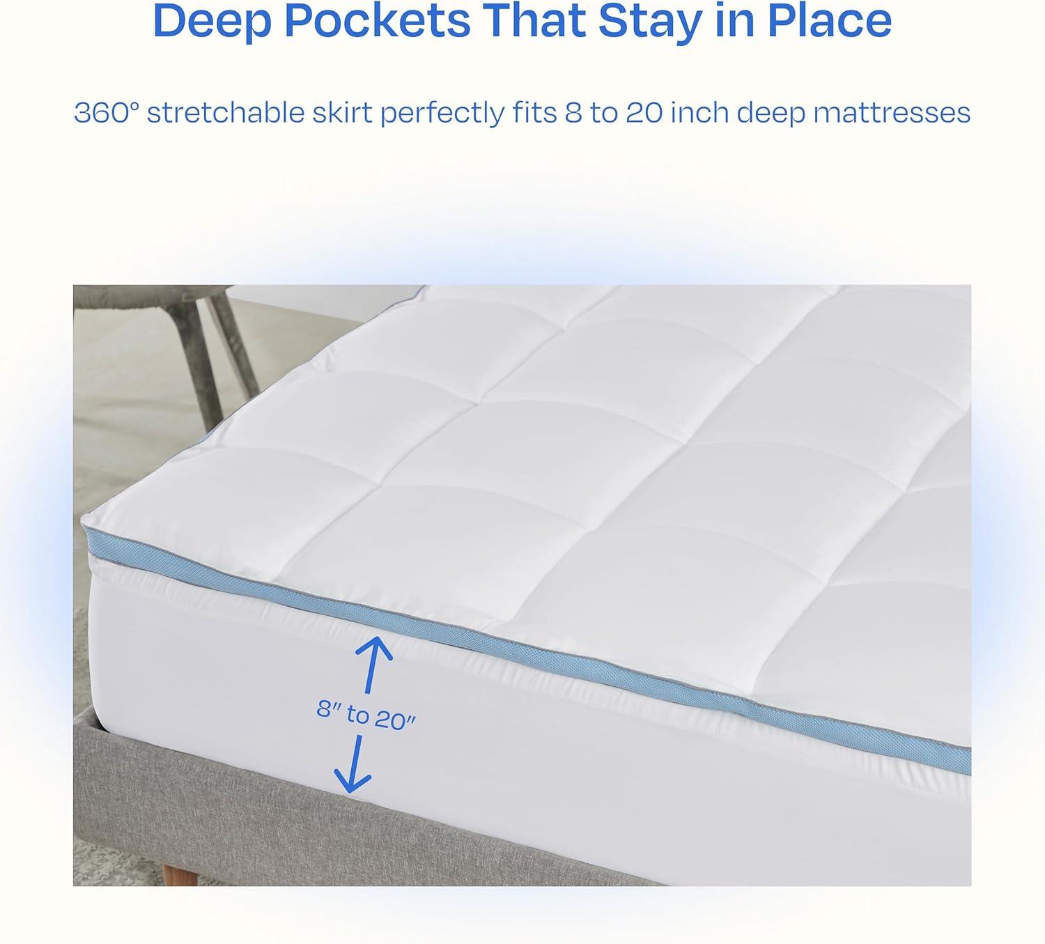Secure Fit & Easy Maintenance: Designed to fit like a glove, our thick california king cooling mattress topper (72” W x 84” L) features a 360° stretchable drop that fits up to 20” deep pocket mattresses and stays securely in place throughout the night. Easily washable at home in your standard size washer/dryer, it fluffs right back up after machine wash and dry, ensuring continuous comfort.