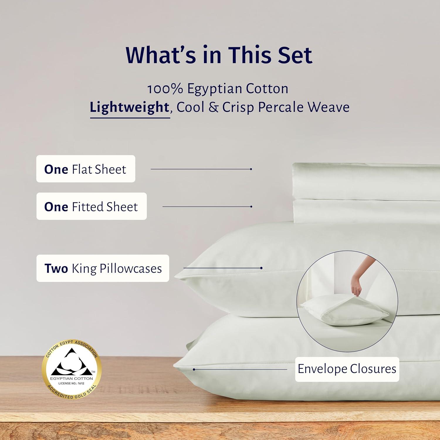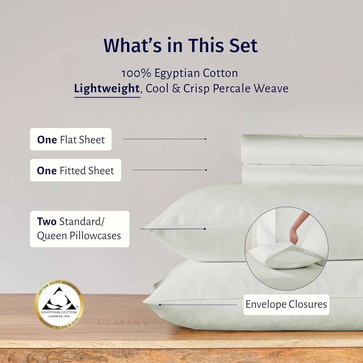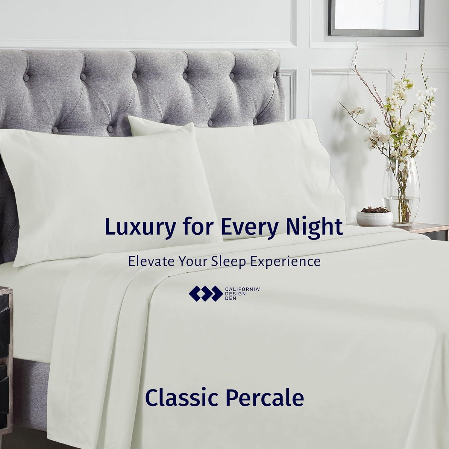 California Design Den Certified 100% Egyptian Cotton Full Size Sheets Set – Lightweight & Crisp Percale Cotton Sheets Full with Deep Pockets, Cool & Durable Luxury Bedding Set – White(Ivory)
