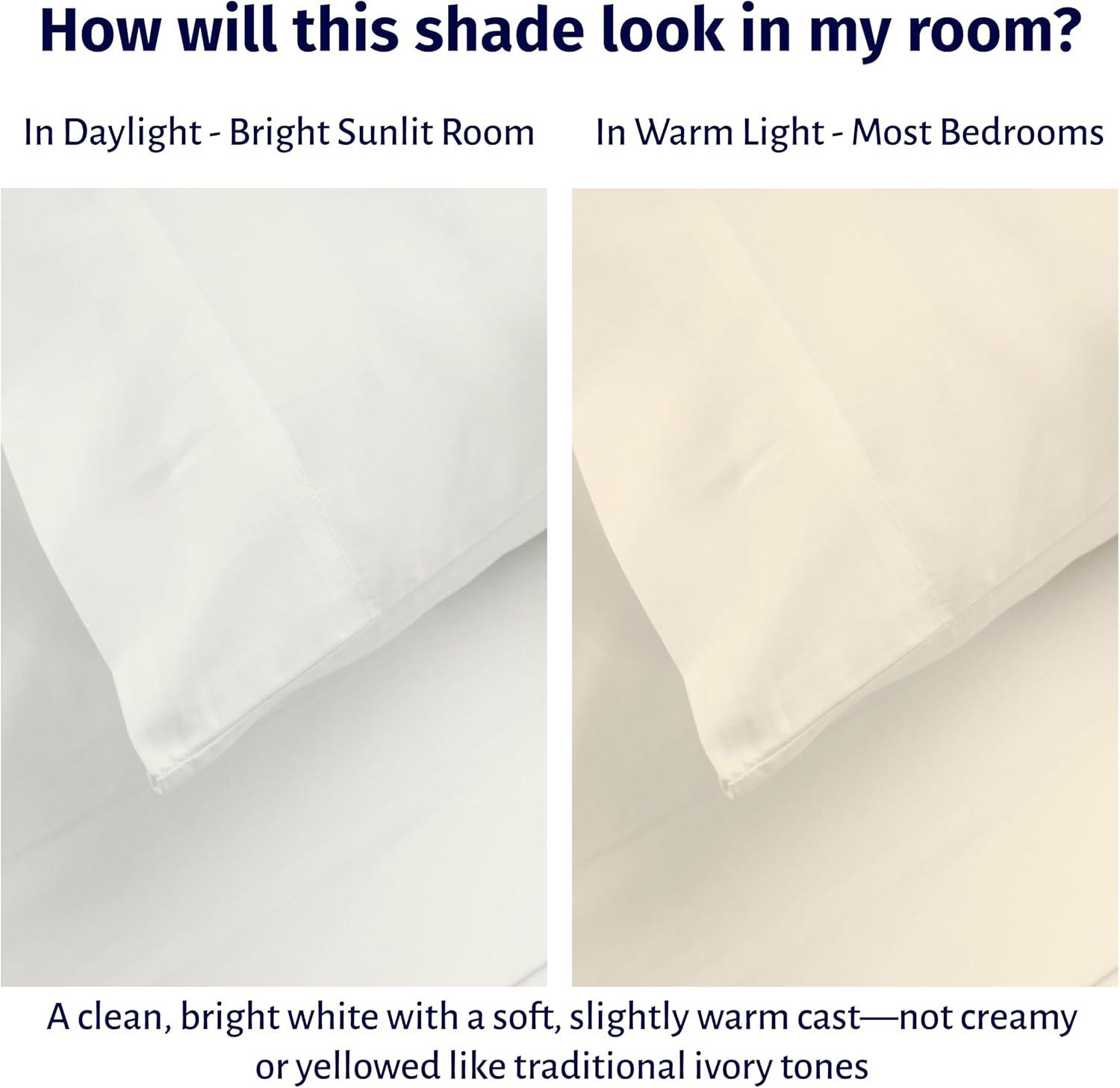 California Design Den Certified 100% Egyptian Cotton Full Size Sheets Set - Lightweight & Crisp Percale Cotton Sheets Full with Deep Pockets, Cool & Durable Luxury Bedding Set - White(Ivory)