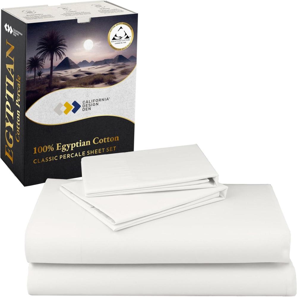 imageCalifornia Design Den Certified 100 Egyptian Cotton Full Size Sheets Set  Lightweight ampamp Crisp Percale Cotton Sheets Full with Deep Pockets Cool ampamp Durable Luxury Bedding Set  WhiteIvory