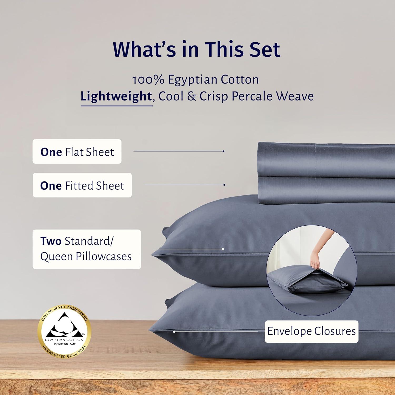 California Design Den Certified 100% Egyptian Cotton Full Size Sheets Set - Lightweight & Crisp Percale Cotton Sheets Full with Deep Pockets, Cool & Durable Luxury Bedding Set - White(Mineral Blue)