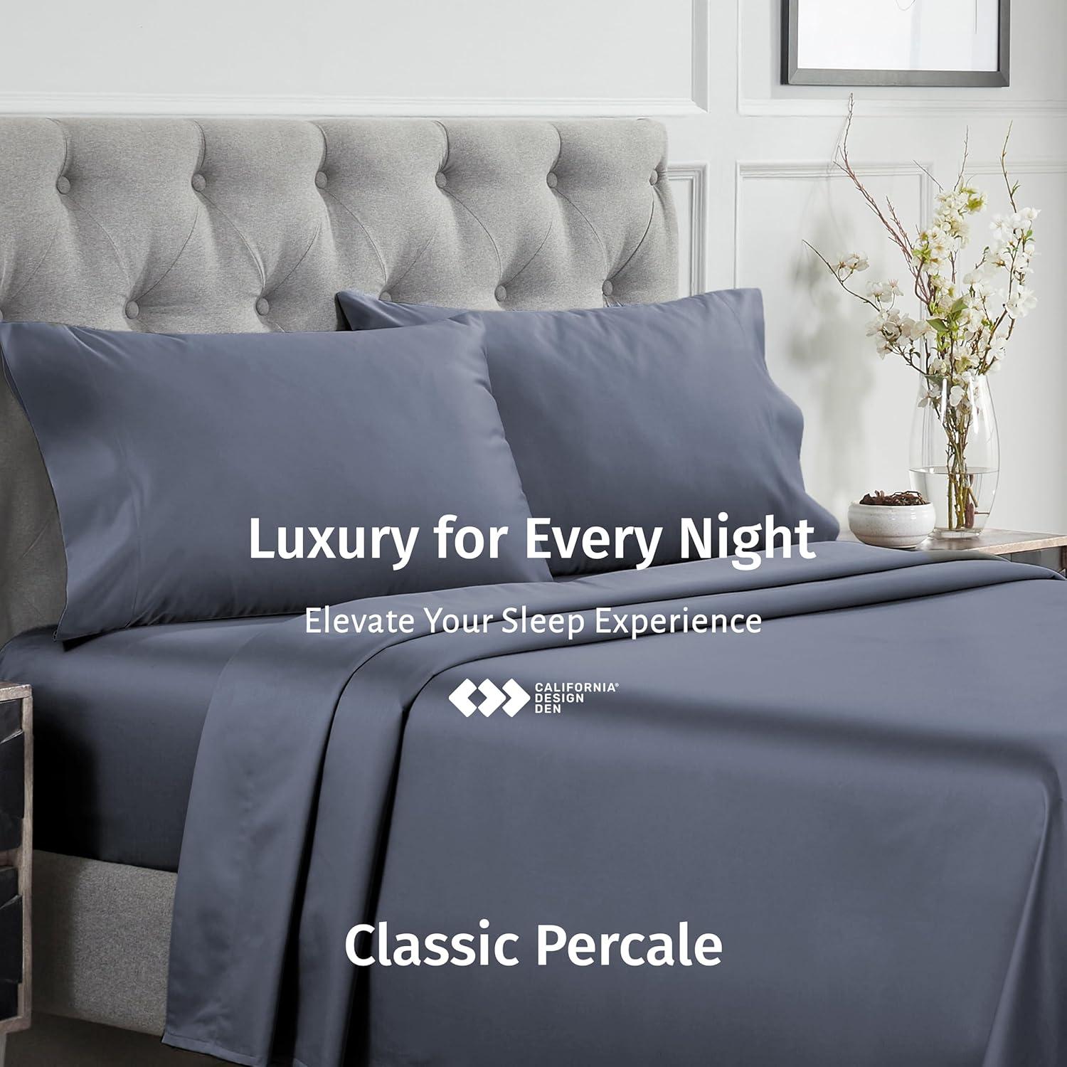 California Design Den Certified 100% Egyptian Cotton Full Size Sheets Set – Lightweight & Crisp Percale Cotton Sheets Full with Deep Pockets, Cool & Durable Luxury Bedding Set – White(Mineral Blue)