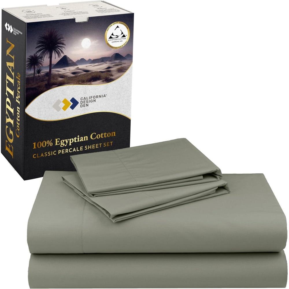 imageCalifornia Design Den Certified 100 Egyptian Cotton Full Size Sheets Set  Lightweight ampamp Crisp Percale Cotton Sheets Full with Deep Pockets Cool ampamp Durable Luxury Bedding Set  WhiteSage Mist  Gray Tone