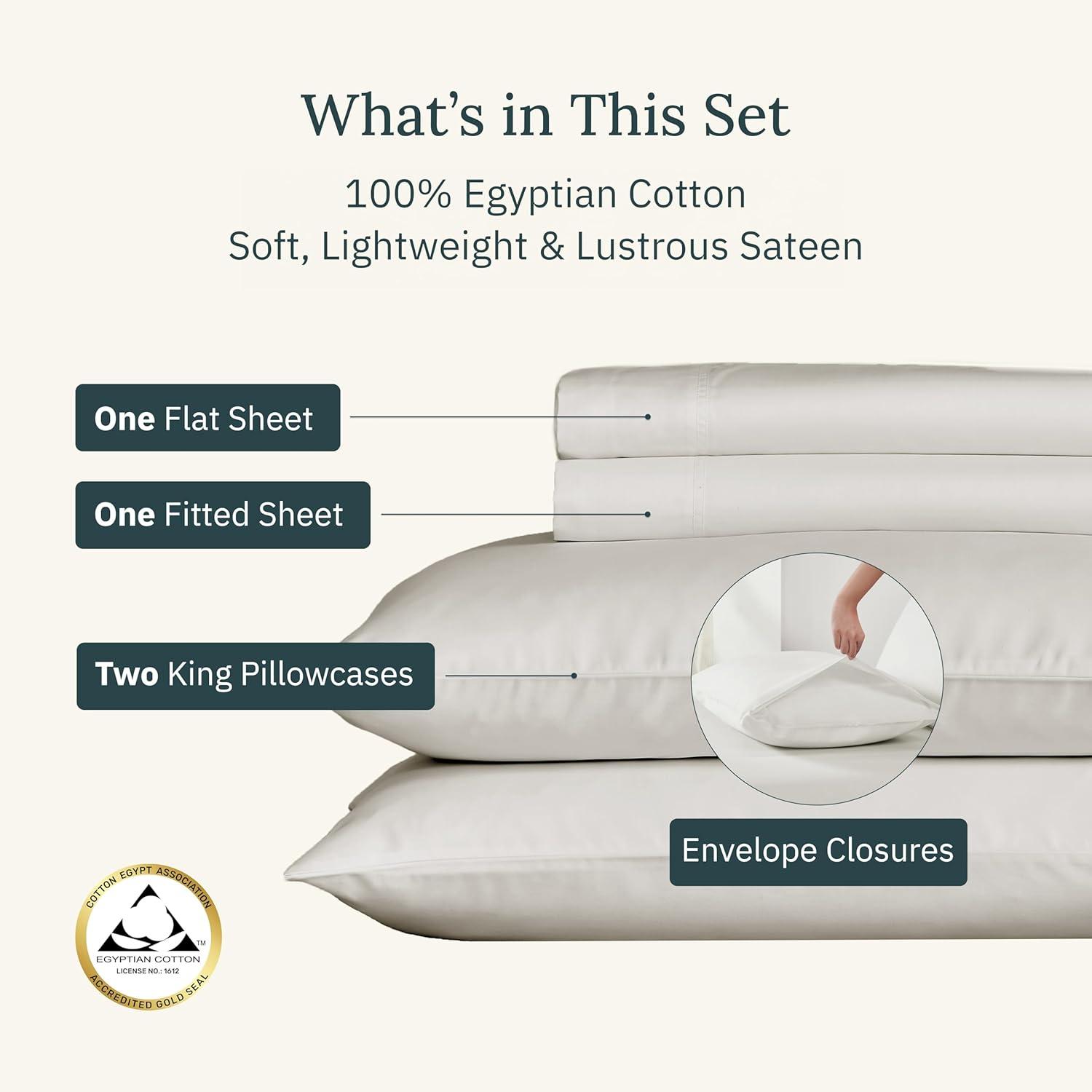 California Design Den Certified 100% Egyptian Cotton Sheets Queen Size, Luxury Queen Sheet Set with Deep Pocket, Soft Sateen Weave, Wrinkle-Resistant, Cool & Durable Bed Sheets, White Sheets(Ivory (Cream Tone))