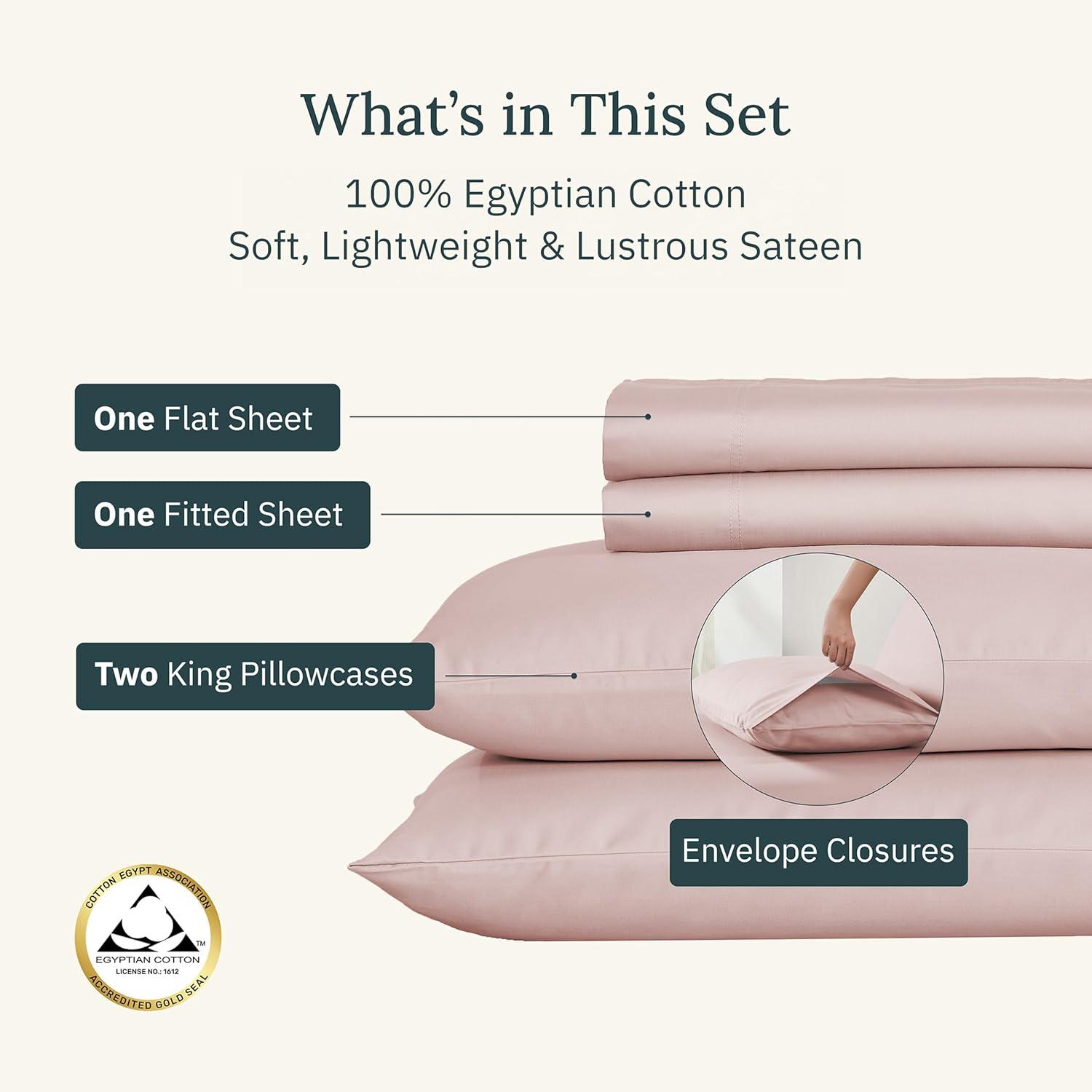 Perfectly Tailored Comfort: These 4 piece Egyptian cotton sheets queen size set includes a generously sized flat sheet (96″W x 102″L), a deep pocket fitted sheet (60″W x 80″L) and 2 standard/queen pillowcases (21″W x 30″L) with envelope closures. The fitted sheet features anti skid elastic for a snug fit on mattresses up to 16 inches deep while head side/foot side indicators ensure easy bed making.