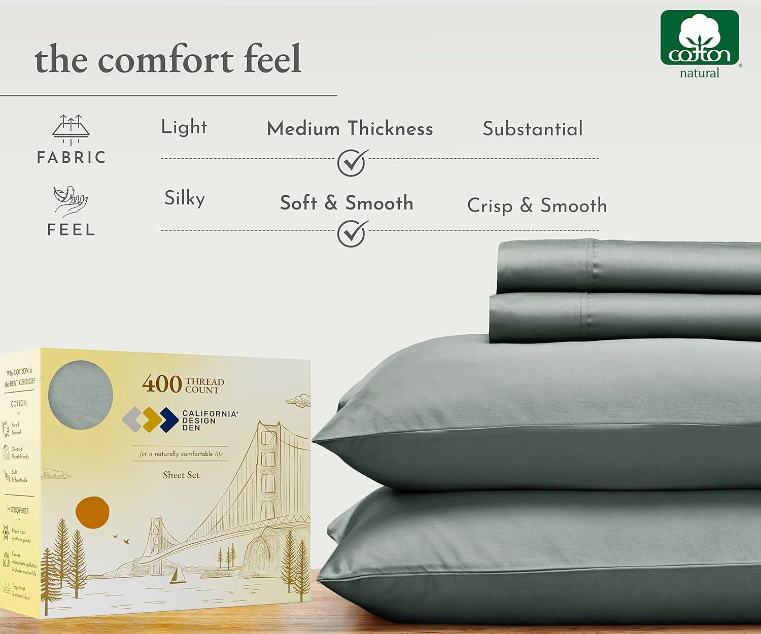 California Design Den Full Size Black Sheet Set – 6 Piece Set Ultra Soft 100% Cotton Sheets, 400 Thread Count Luxury Sateen Weave, Deep Pocket Bedsheets, Includes 4 Pillowcases (Full, True Black)(Sage Green)