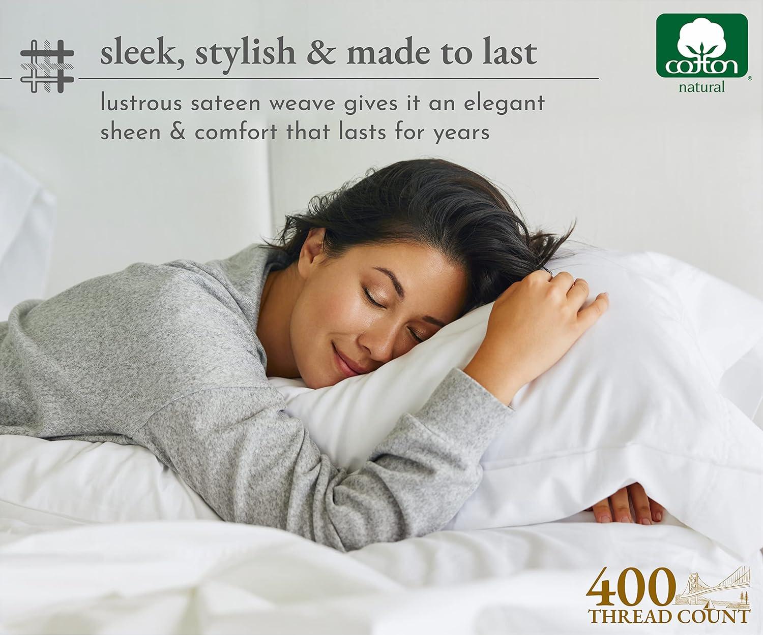 Transform your sleep experience with our Good Housekeeping Award Winner 400 Thread Count Sheet Set. Crafted from 100% long-staple cotton, these sheets offer the perfect blend of softness, strength, and breathability, ensuring a restful and rejuvenating night's sleep. These sheets are designed to provide exceptional durability and softness. The sateen weave enhances the fabric's natural sheen and smooth texture. With a 400 thread count, these sheets strike the perfect balance between luxury and comfort, offering a silky-smooth feel against your skin. The fitted sheet features deep pockets that easily accommodate mattresses up to 16 inches deep, ensuring a snug and secure fit. The all around premium elastic keeps the sheet in place all night long. The natural cotton fibers are breathable, promoting airflow and helping to regulate body temperature for a comfortable sleep. Our sheets are designed to keep you cool in the summer and warm in the winter, making them perfect for year-round use. The breathable cotton fabric ensures maximum comfort in any climate. Available in a variety of colors and patterns, our sheet set adds a touch of elegance to any bedroom decor.