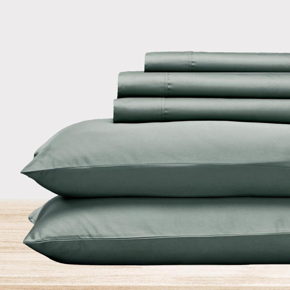 imageCalifornia Design Den Full Size Black Sheet Set  6 Piece Set Ultra Soft 100 Cotton Sheets 400 Thread Count Luxury Sateen Weave Deep Pocket Bedsheets Includes 4 Pillowcases Full True BlackSage Green