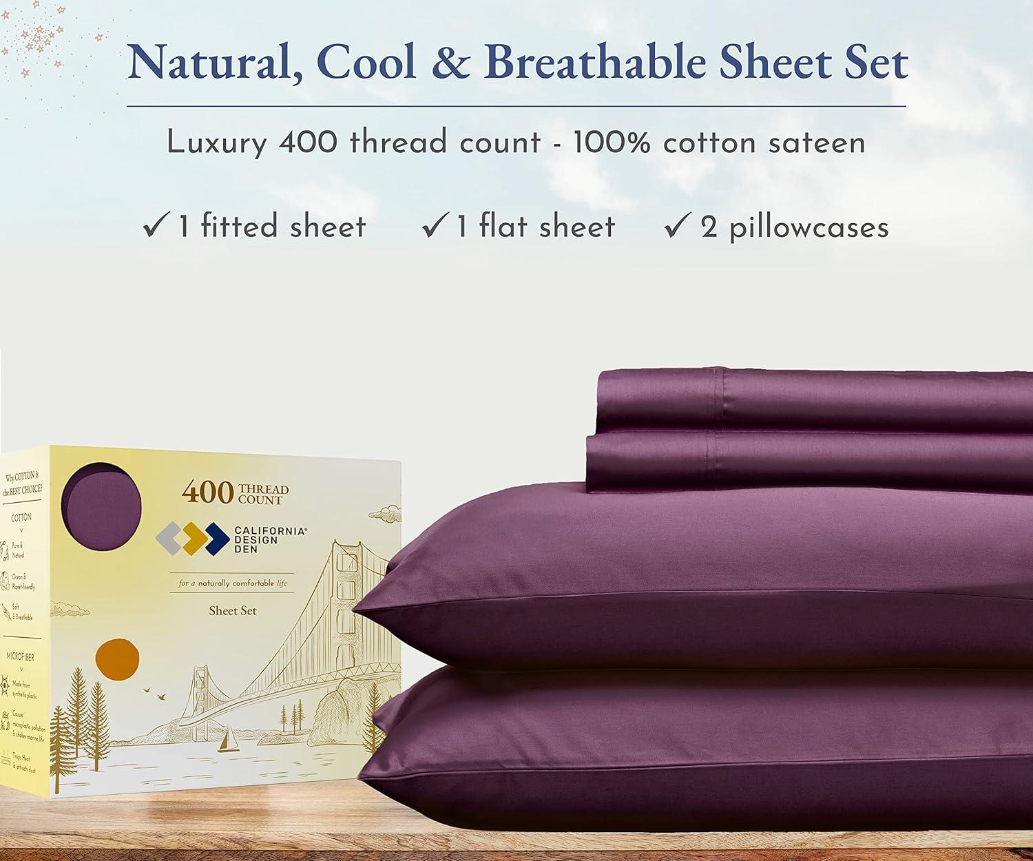 Transform your sleep experience with our Good Housekeeping Award Winner 400 Thread Count Sheet Set. Crafted from 100% long-staple cotton, these sheets offer the perfect blend of softness, strength, and breathability, ensuring a restful and rejuvenating night's sleep. These sheets are designed to provide exceptional durability and softness. The sateen weave enhances the fabric's natural sheen and smooth texture. With a 400 thread count, these sheets strike the perfect balance between luxury and comfort, offering a silky-smooth feel against your skin. The fitted sheet features deep pockets that easily accommodate mattresses up to 16 inches deep, ensuring a snug and secure fit. The all around premium elastic keeps the sheet in place all night long. The natural cotton fibers are breathable, promoting airflow and helping to regulate body temperature for a comfortable sleep. Our sheets are designed to keep you cool in the summer and warm in the winter, making them perfect for year-round use. The breathable cotton fabric ensures maximum comfort in any climate. Available in a variety of colors and patterns, our sheet set adds a touch of elegance to any bedroom decor.