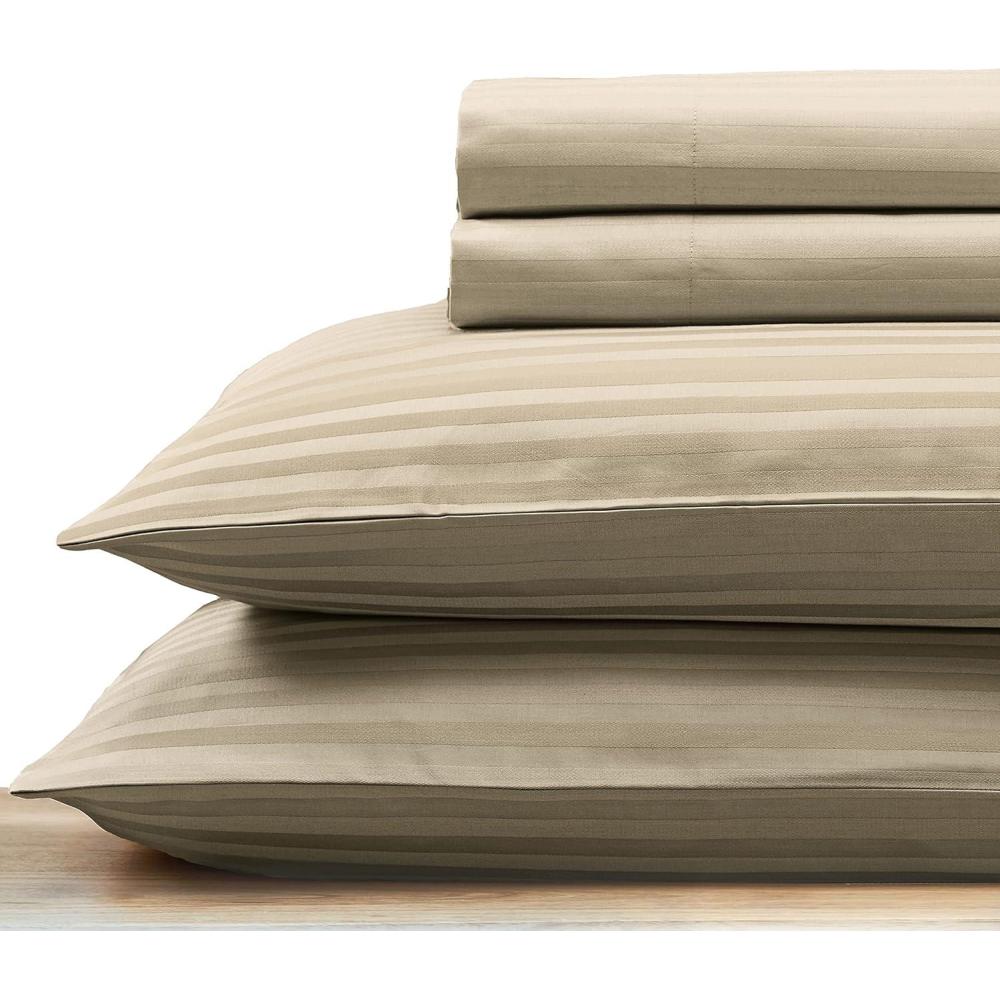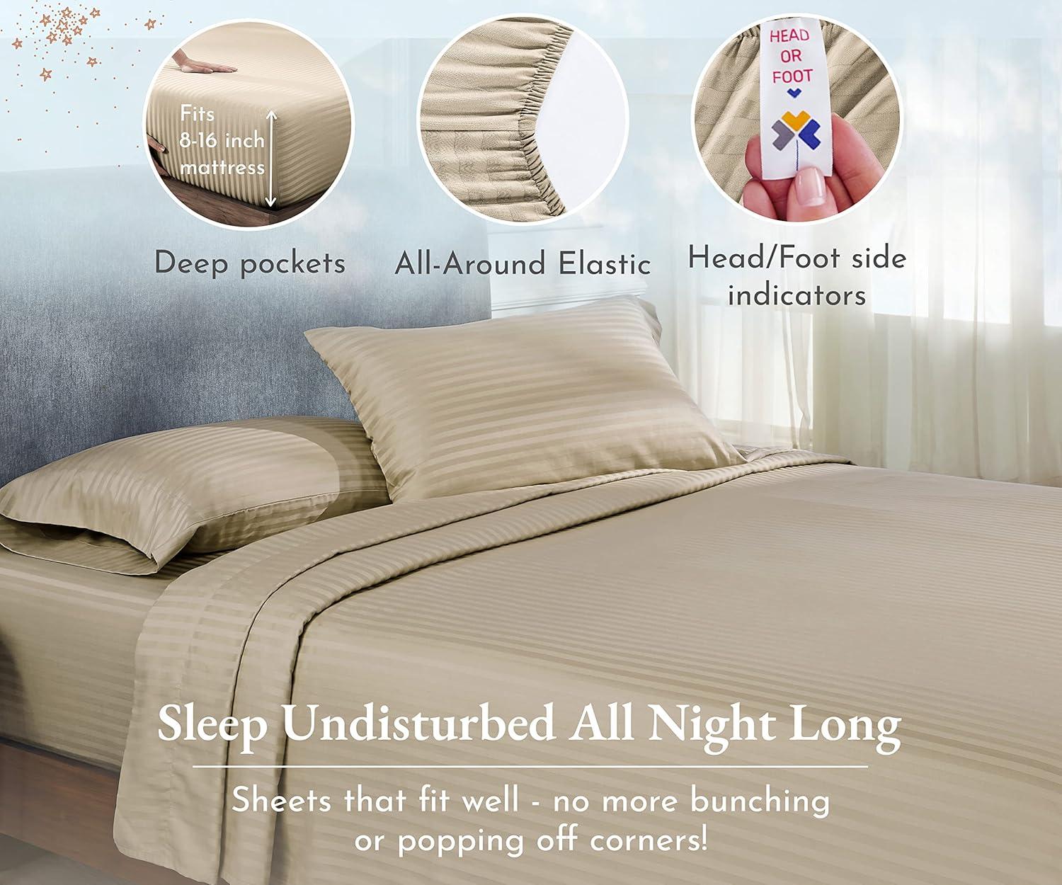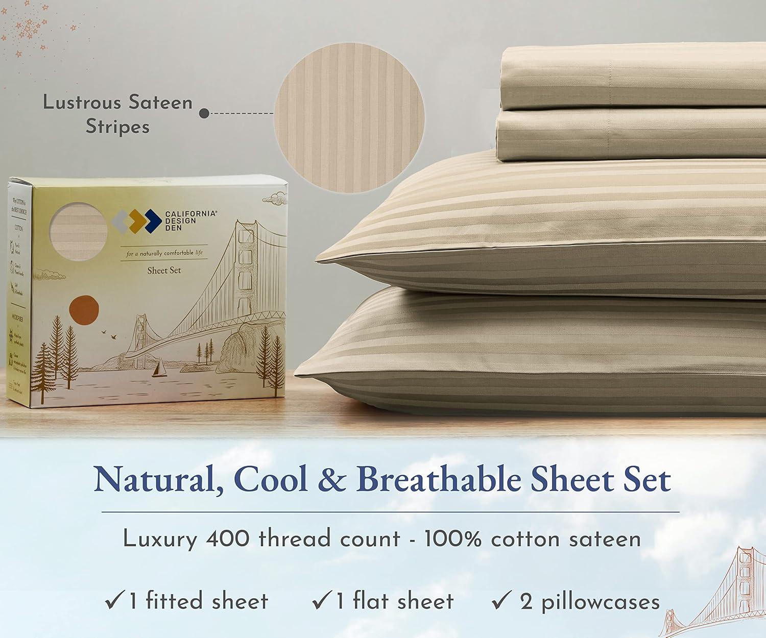 Transform your sleep experience with our Good Housekeeping Award Winner 400 Thread Count Sheet Set. Crafted from 100% long-staple cotton, these sheets offer the perfect blend of softness, strength, and breathability, ensuring a restful and rejuvenating night's sleep. These sheets are designed to provide exceptional durability and softness. The sateen weave enhances the fabric's natural sheen and smooth texture. With a 400 thread count, these sheets strike the perfect balance between luxury and comfort, offering a silky-smooth feel against your skin. The fitted sheet features deep pockets that easily accommodate mattresses up to 16 inches deep, ensuring a snug and secure fit. The all around premium elastic keeps the sheet in place all night long. The natural cotton fibers are breathable, promoting airflow and helping to regulate body temperature for a comfortable sleep. Our sheets are designed to keep you cool in the summer and warm in the winter, making them perfect for year-round use. The breathable cotton fabric ensures maximum comfort in any climate. Available in a variety of colors and patterns, our sheet set adds a touch of elegance to any bedroom decor.