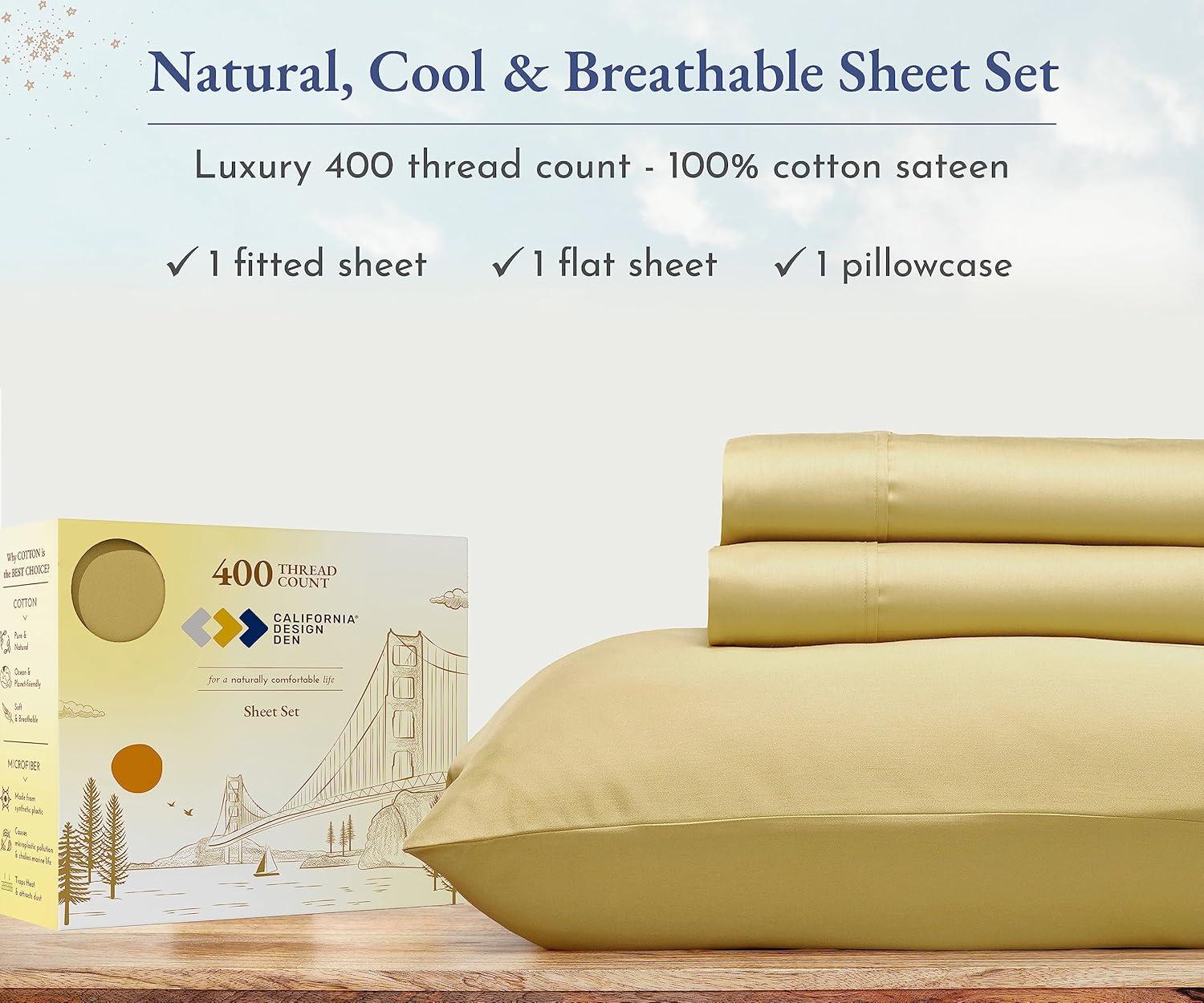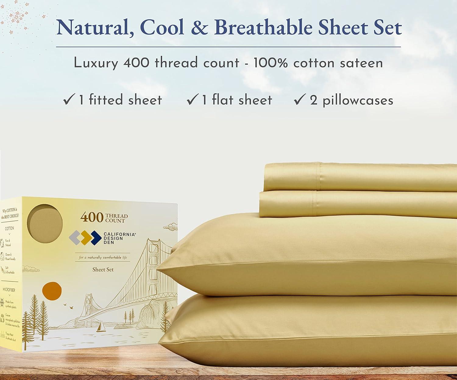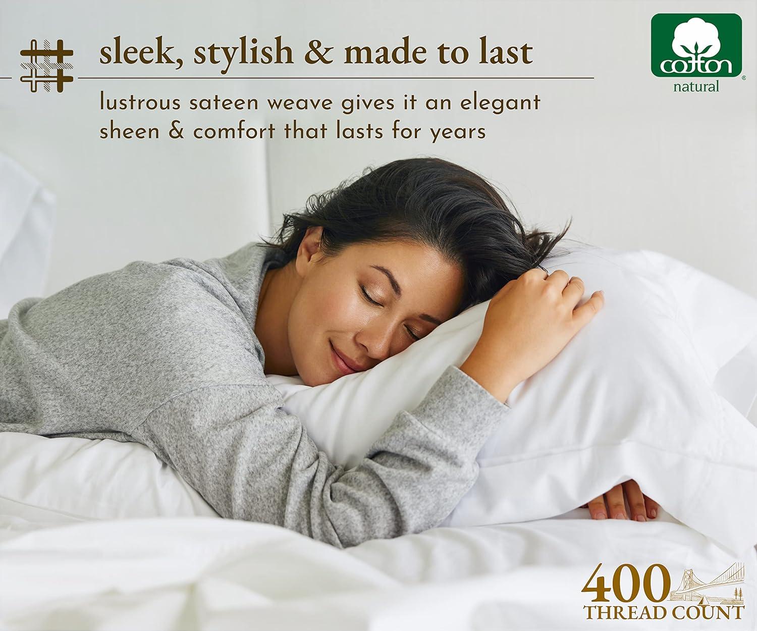 Transform your sleep experience with our Good Housekeeping Award Winner 400 Thread Count Sheet Set. Crafted from 100% long-staple cotton, these sheets offer the perfect blend of softness, strength, and breathability, ensuring a restful and rejuvenating night's sleep. These sheets are designed to provide exceptional durability and softness. The sateen weave enhances the fabric's natural sheen and smooth texture. With a 400 thread count, these sheets strike the perfect balance between luxury and comfort, offering a silky-smooth feel against your skin. The fitted sheet features deep pockets that easily accommodate mattresses up to 16 inches deep, ensuring a snug and secure fit. The all around premium elastic keeps the sheet in place all night long. The natural cotton fibers are breathable, promoting airflow and helping to regulate body temperature for a comfortable sleep. Our sheets are designed to keep you cool in the summer and warm in the winter, making them perfect for year-round use. The breathable cotton fabric ensures maximum comfort in any climate. Available in a variety of colors and patterns, our sheet set adds a touch of elegance to any bedroom decor.