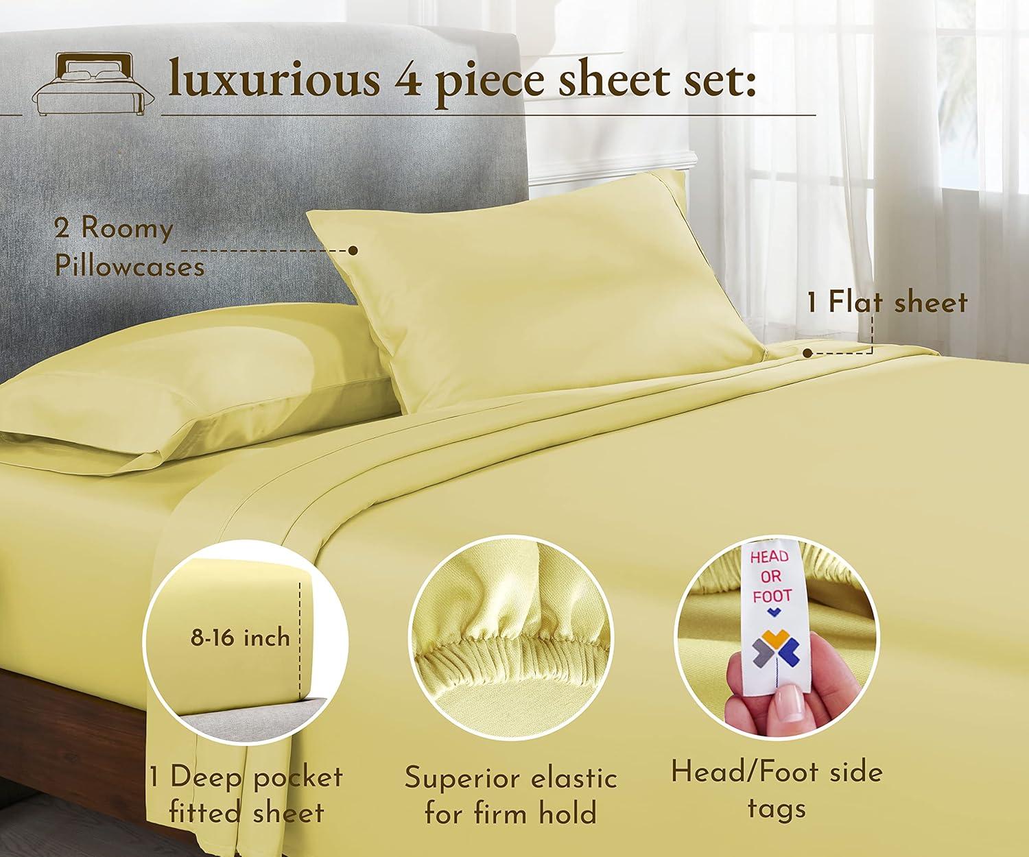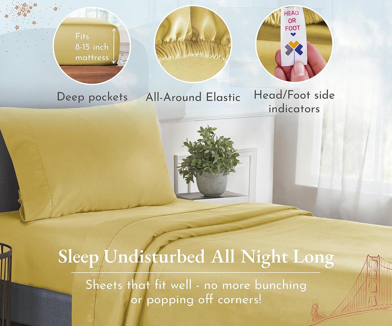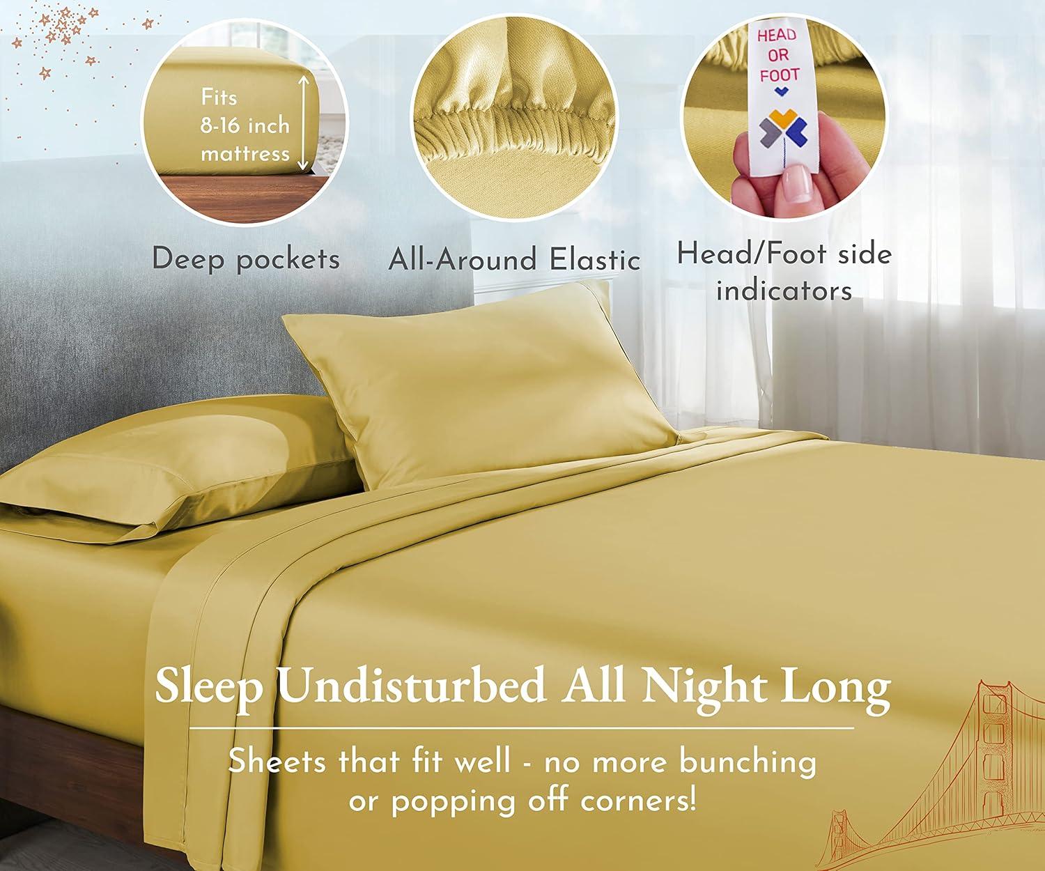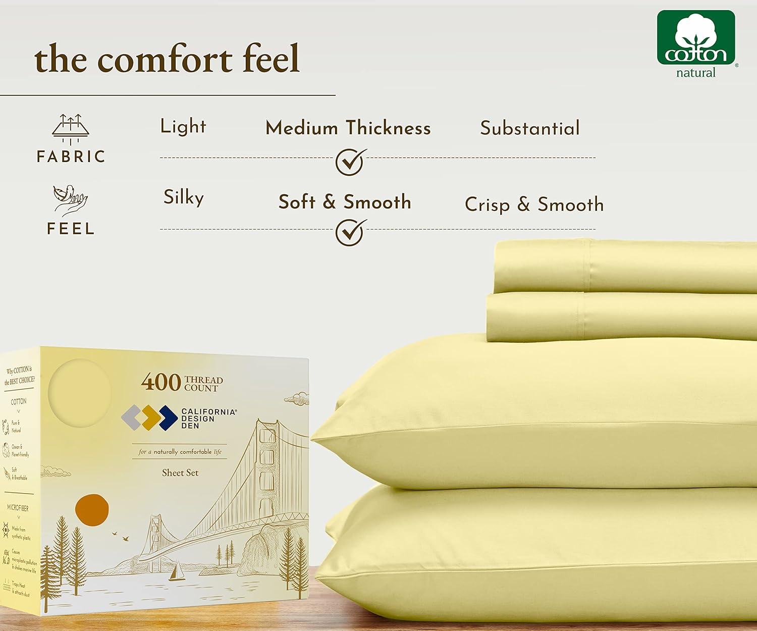 Transform your sleep experience with our Good Housekeeping Award Winner 400 Thread Count Sheet Set. Crafted from 100% long-staple cotton, these sheets offer the perfect blend of softness, strength, and breathability, ensuring a restful and rejuvenating night's sleep. These sheets are designed to provide exceptional durability and softness. The sateen weave enhances the fabric's natural sheen and smooth texture. With a 400 thread count, these sheets strike the perfect balance between luxury and comfort, offering a silky-smooth feel against your skin. The fitted sheet features deep pockets that easily accommodate mattresses up to 16 inches deep, ensuring a snug and secure fit. The all around premium elastic keeps the sheet in place all night long. The natural cotton fibers are breathable, promoting airflow and helping to regulate body temperature for a comfortable sleep. Our sheets are designed to keep you cool in the summer and warm in the winter, making them perfect for year-round use. The breathable cotton fabric ensures maximum comfort in any climate. Available in a variety of colors and patterns, our sheet set adds a touch of elegance to any bedroom decor.