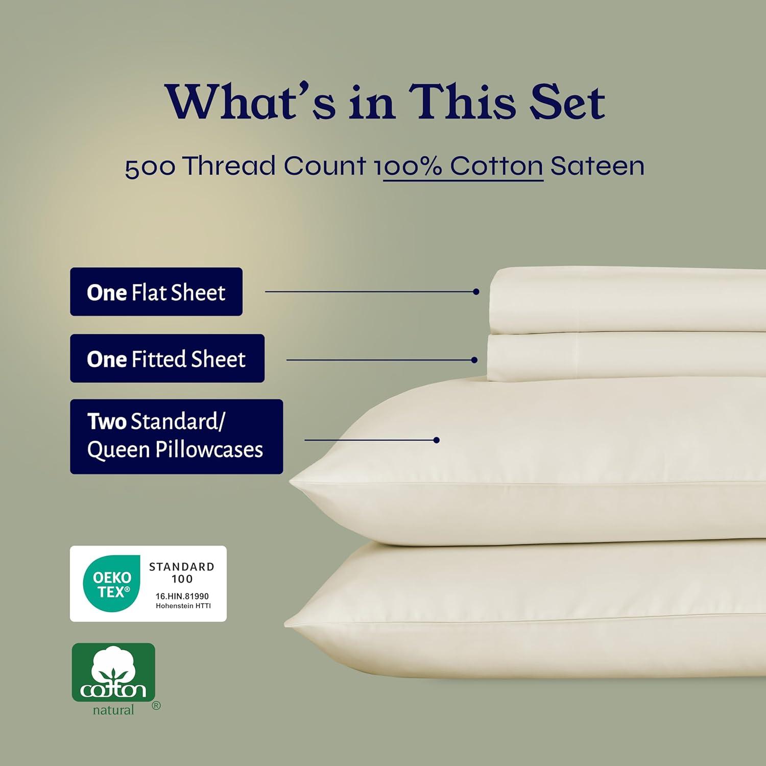 Comfortable Sleep Every Night: Transform your sleep experience with our 500 thread count full sheet set crafted from the purest 100% cotton sateen. Each piece offers a luxurious coolness and supreme softness that ensure mornings are as revitalizing as restful.