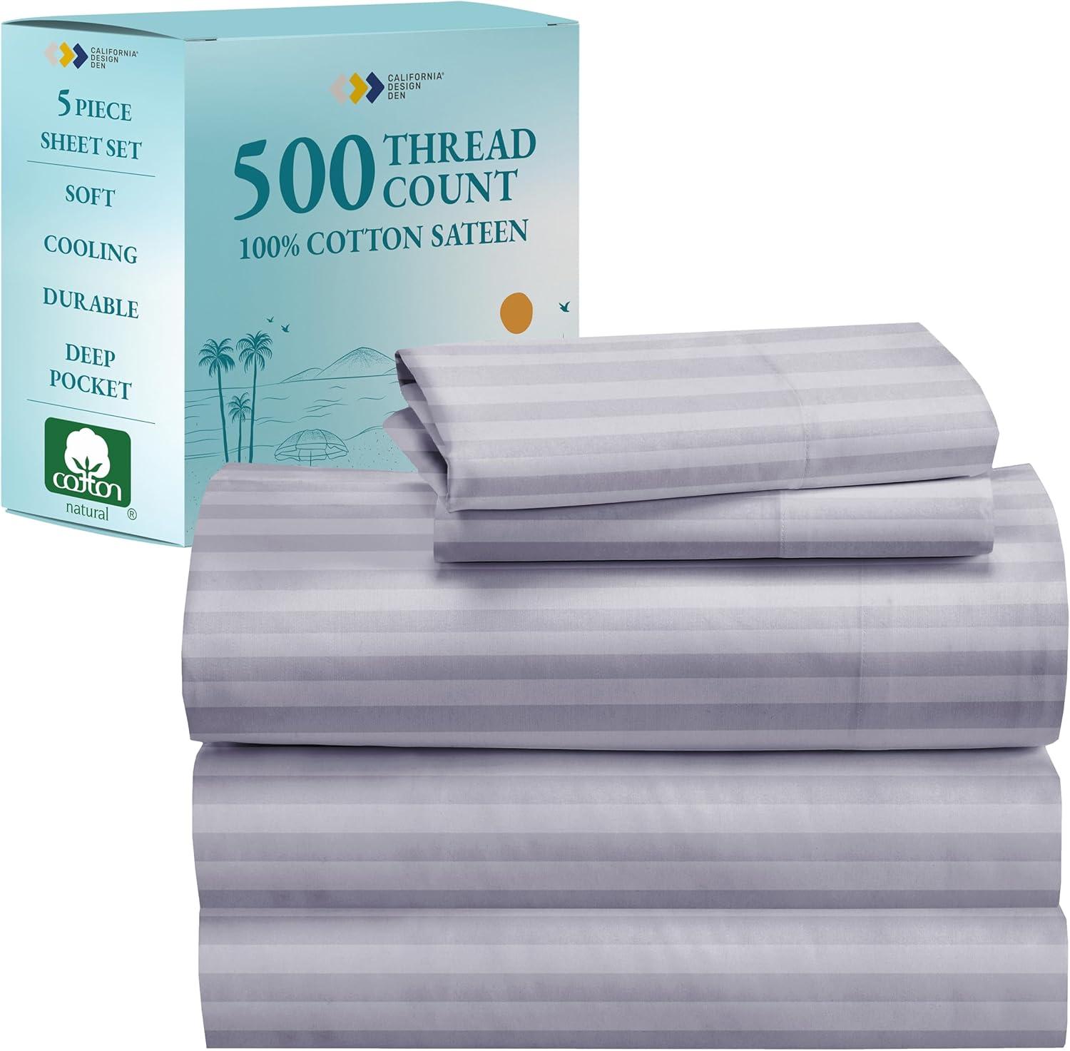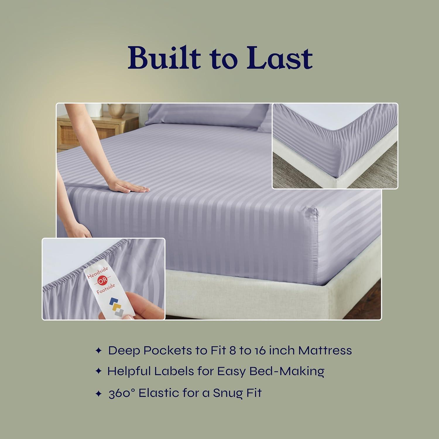 imageCalifornia Design Den Full Size Sheet Set  100 Cotton 500 Thread Count Sateen Cooling Deep Pocket Bed Sheets with Fitted Elastic Sheet Extra Soft Luxury Hotel Quality  White13  Lavender Striped