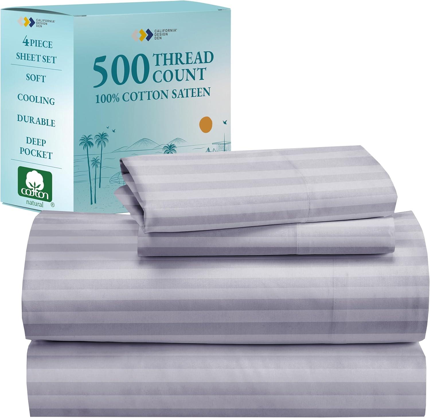 California Design Den Full Size Sheet Set - 100% Cotton, 500 Thread Count Sateen, Cooling Deep Pocket Bed Sheets with Fitted Elastic Sheet, Extra Soft Luxury Hotel Quality - White(13 - Lavender Striped)
