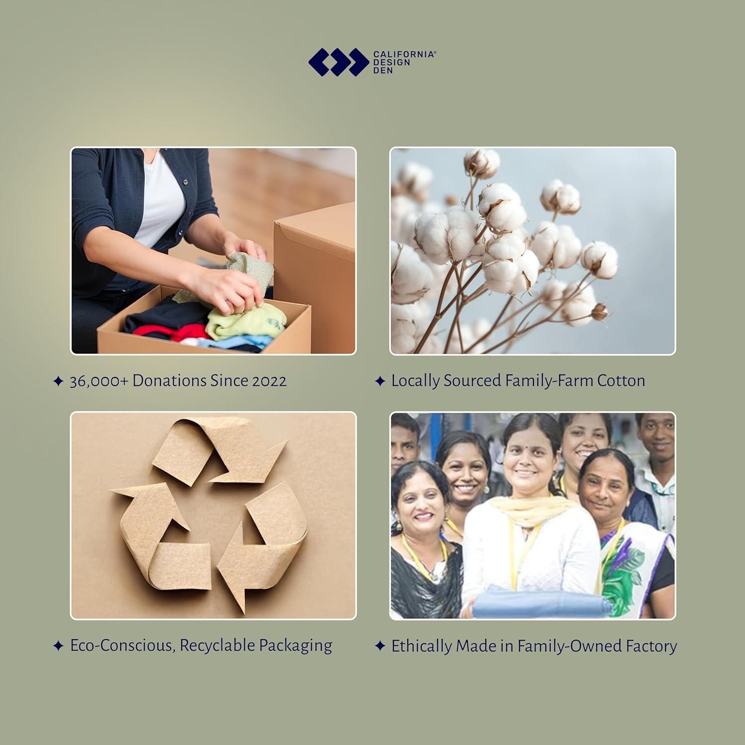 Our Commitment: We prioritize comfort, community, and sustainability. Since 2022, we've donated over 36,000 bedding items to US charities and removed plastic from our packaging. Sheets are crafted in our family‑owned factory in India with care and quality‑checked—thread count may vary by ±5% due to standard manufacturing limits. Enjoy affordable luxury and hassle‑free returns for a better night’s sleep.