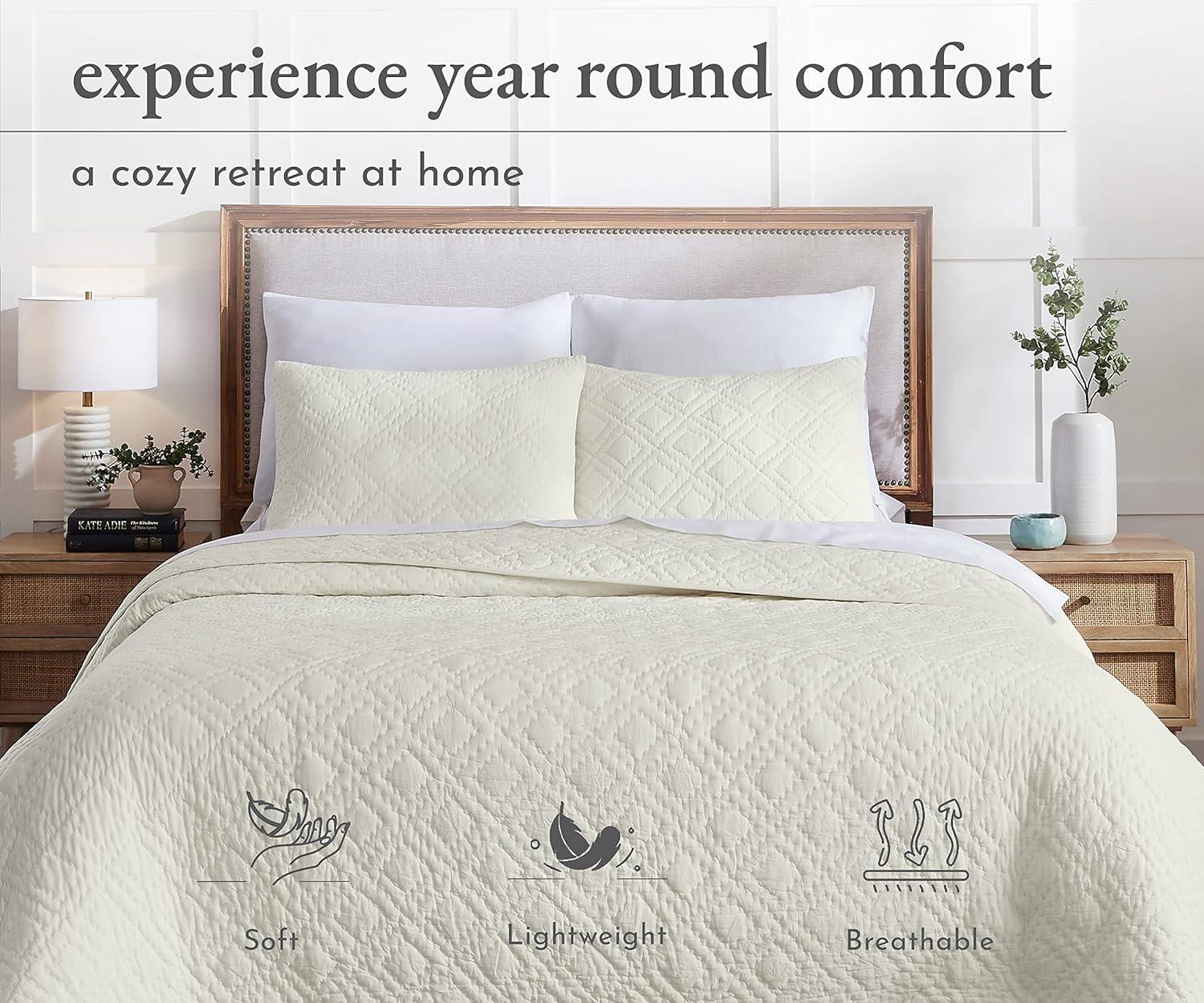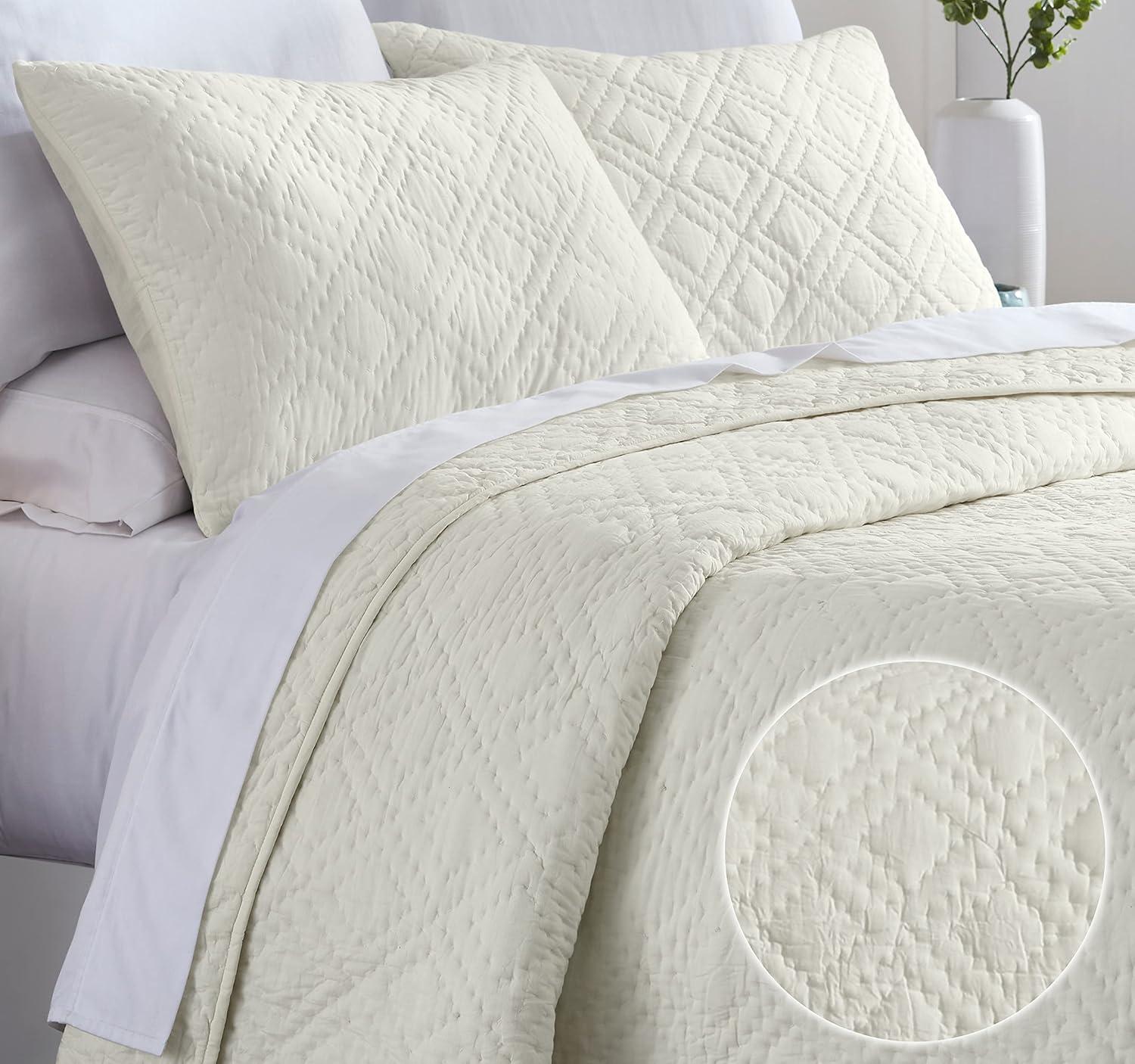 Versatile Diamond Quilt Pattern for All: Made with soft voile cotton for natural luster and durability. The soft texture makes a cozy and breathable blanket while the intricate stitching by hand elevates the style quotient of any bedroom. Also available in Queen, King, Full, and for a Crib & wide range of color options in Grey, Light Blue, Navy Blue, White, and Creamy Ivory
