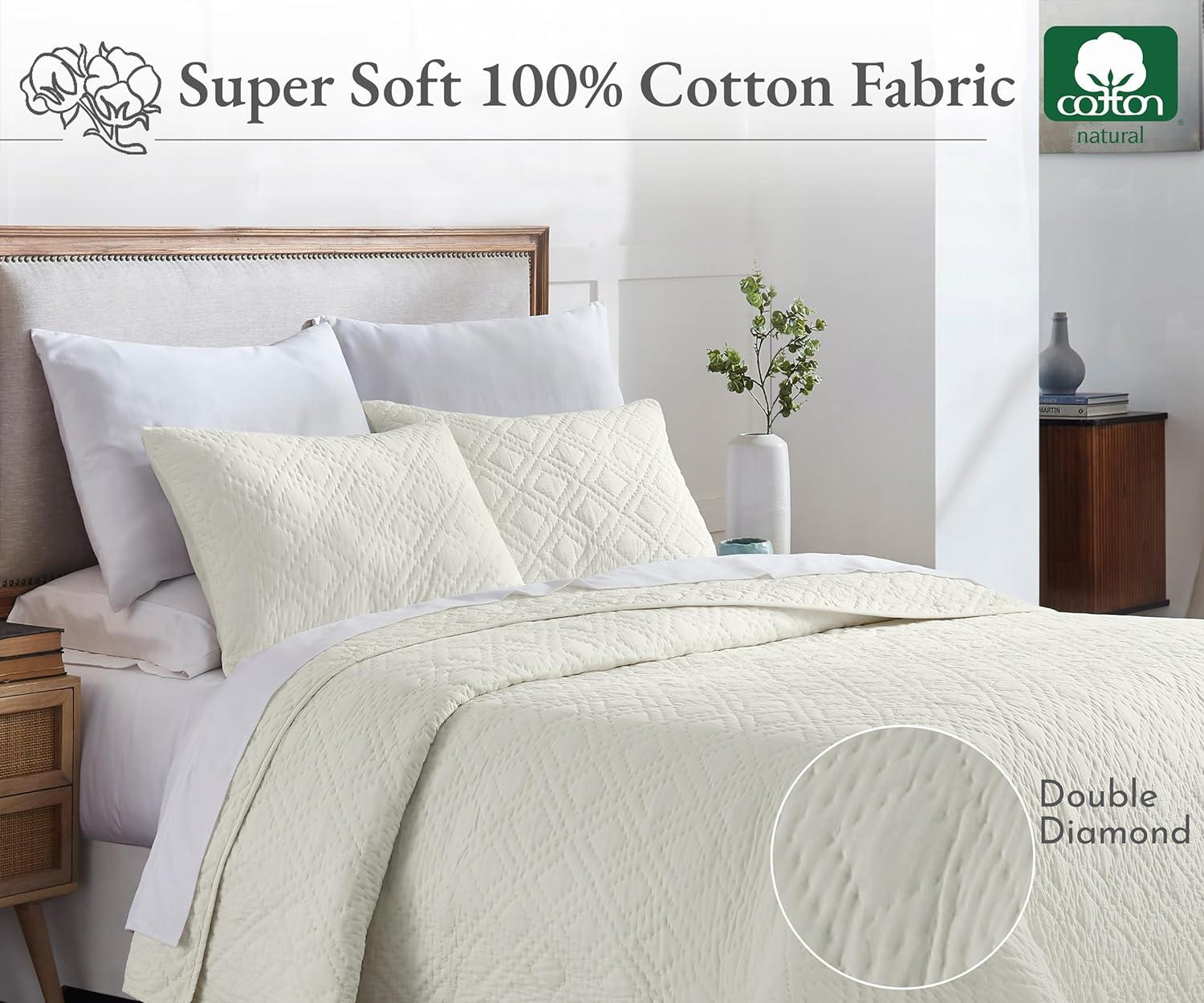 Durable & Easy to Wash: This beautiful cotton bedspread is machine washable and easy to tumble dry. The 100% cotton fabric with soft fluffy polyester fill of this quilt set becomes softer and fluffier after every wash and does not fade or shrink.
