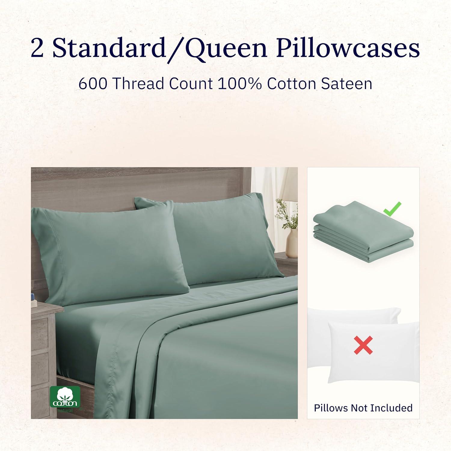 FIVE STAR HOTEL QUALITY 100% COTTON SATEEN PILLOWCASES: While many make exaggerated claims of Egyptian-cotton quality, our 600-thread-count sateen 100% cotton pillowcases deliver authentic, smooth, cool, and crisp luxury—reminiscent of five-star hotels. This cooling pillowcase set with its all-natural, breathable construction wicks moisture and regulates your body’s temperature to keep you cool in the summer and warm in the winter for comfortable, year-round sleep.
