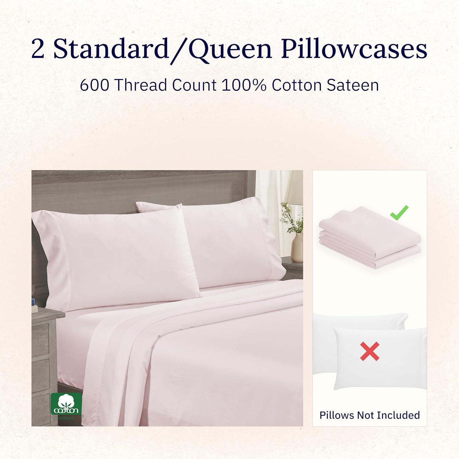 FIVE STAR HOTEL QUALITY 100% COTTON SATEEN PILLOWCASES: While many make exaggerated claims of Egyptian-cotton quality, our 600-thread-count sateen 100% cotton pillowcases deliver authentic, smooth, cool, and crisp luxury—reminiscent of five-star hotels. This cooling pillowcase set with its all-natural, breathable construction wicks moisture and regulates your body’s temperature to keep you cool in the summer and warm in the winter for comfortable, year-round sleep.
