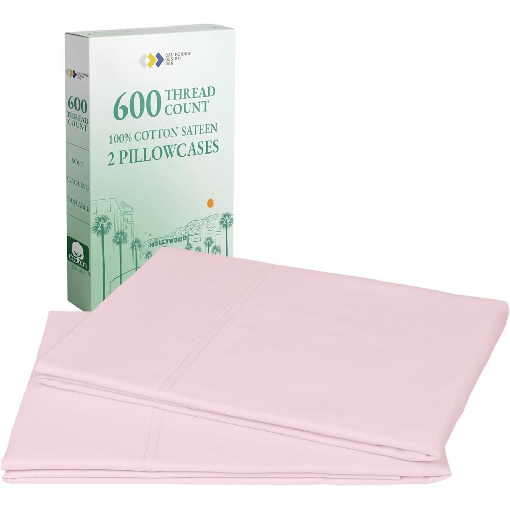 CALIFORNIA DESIGN DEN Luxuriously Soft Hotel Quality 600 Thread Count, 100% Cotton Set of 2 Cases, Crisp & Cool Dark Gray Pillow Cases Standard Fits Standard & Queen Pillows (Dark Gray)(19 - Blush Pink)