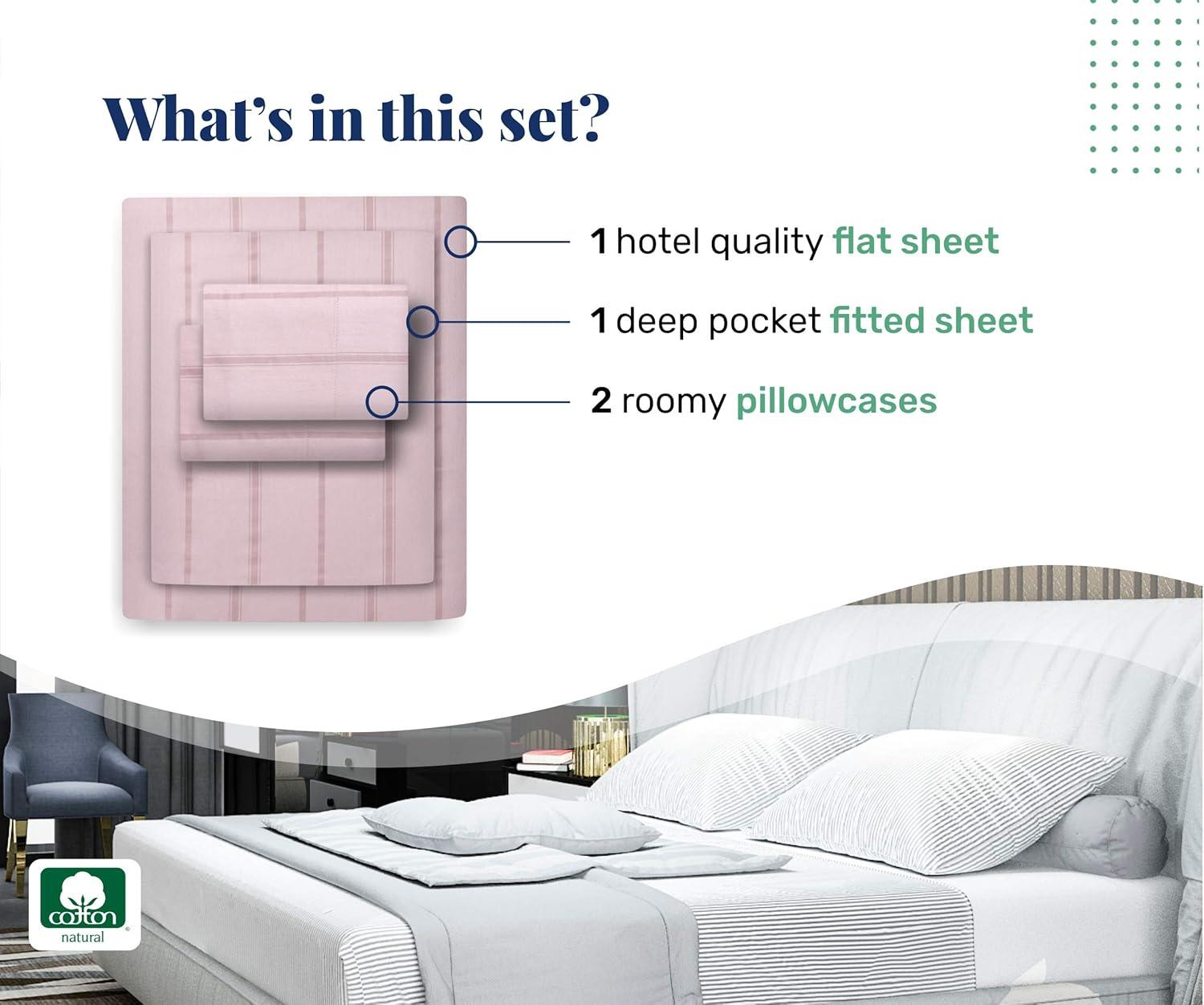 California Design Den – Luxury Full Size Sheet Set 100% Cotton, 600 Thread Count Deep Pocket, Snug Fit, Soft & Crisp Hotel-Quality Sheets Full Size Bed 4 Pc Sateen 4 Pc Set (Ticking Stripe Pattern)(Classic Stripe – Pastel Rose)