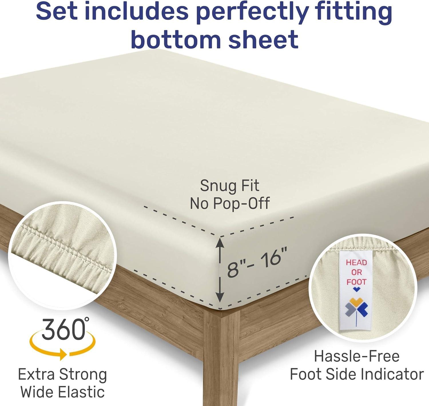 California Design Den - Luxury Full Size Sheet Set 100% Cotton, 600 Thread Count Deep Pocket, Snug Fit, Soft & Crisp Hotel-Quality Sheets Full Size Bed 4 Pc Sateen 4 Pc Set (Ticking Stripe Pattern)(Ivory)