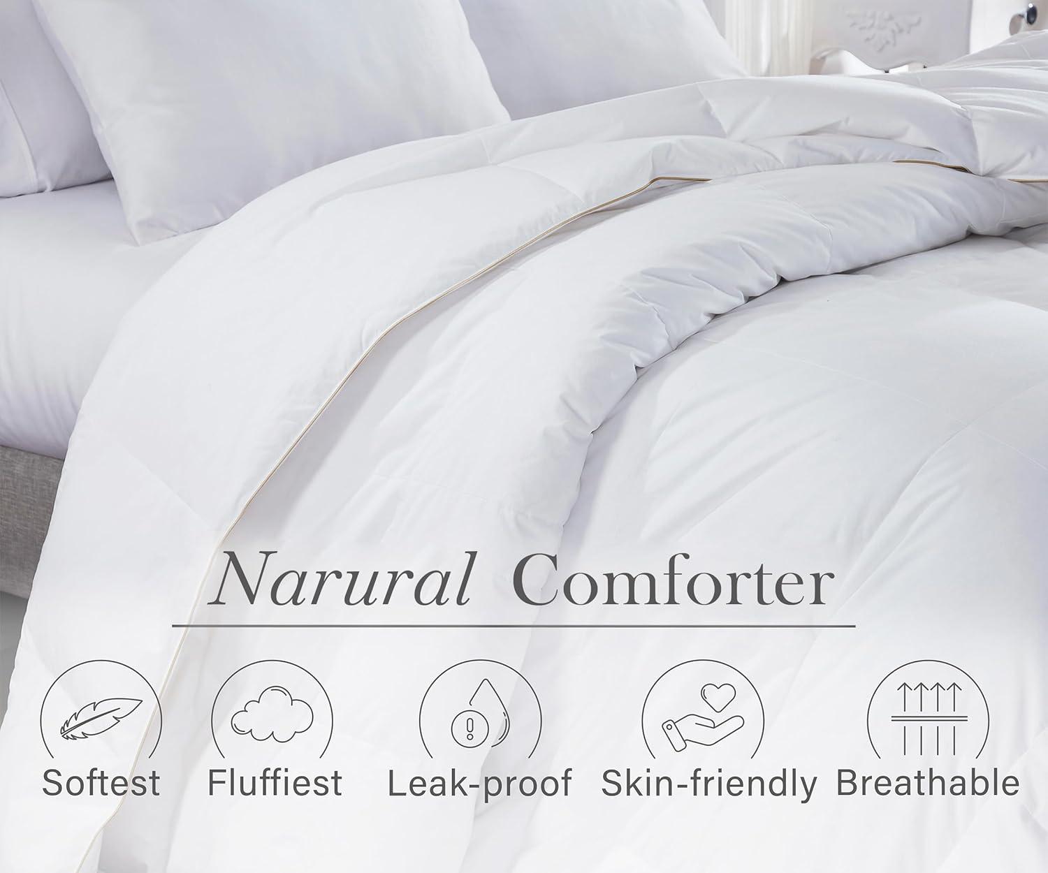 Authentic Real Natural Down Cluster Waterfowl Feather Queen Comforter – Experience pure luxury with our independently tested & certified comforter queen meeting all US standards. This duvet insert boasts a generous 46 OZ fill weight and has cotton fabric cover so you get the softest, fluffiest, leak-proof, skin-friendly, and breathable comforter to last for decades.