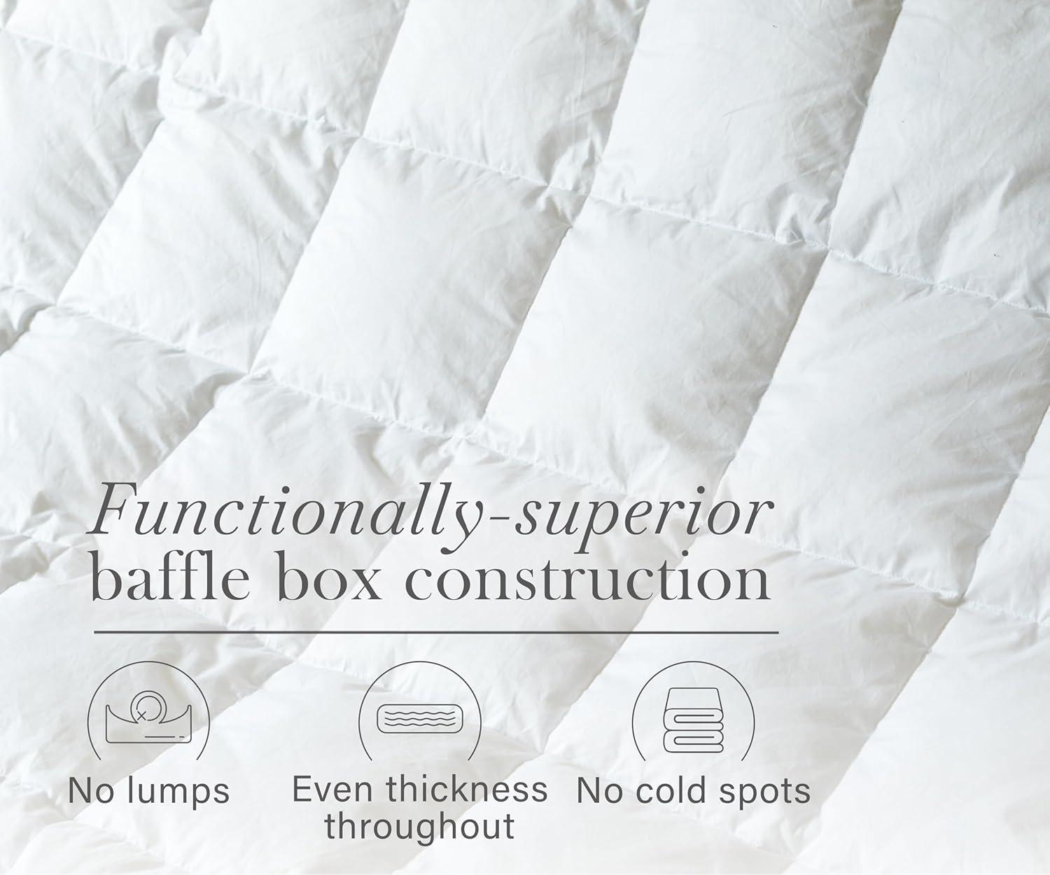 Smartly Designed & Ethically Made – Measuring 90″ x 90″, this queen comforter full size boasts “Responsible Down Standard” certification. Its top-notch baffle box construction ensures consistent warmth distribution, eliminating lumps and cold spots. Additionally, it comes equipped with 8 corner loops, allowing you to easily secure your duvet cover.