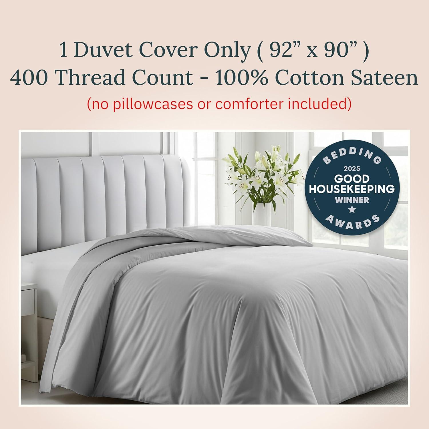 California Design Den Oversized King Duvet Cover Only - Winner Good Housekeeping Best Bedding Awards 2025, Premium 400 Thread Count Sateen, 100% Cotton Duvet Cover, Button Closure & Corner Ties -White(06 - Grey Light)