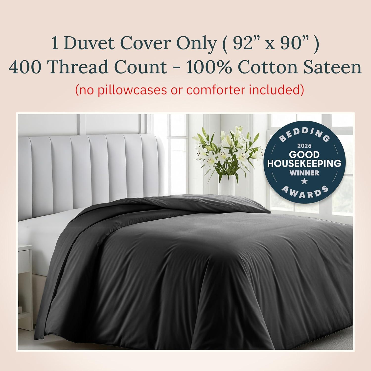 California Design Den Oversized King Duvet Cover Only - Winner Good Housekeeping Best Bedding Awards 2025, Premium 400 Thread Count Sateen, 100% Cotton Duvet Cover, Button Closure & Corner Ties -White(08 - Black)