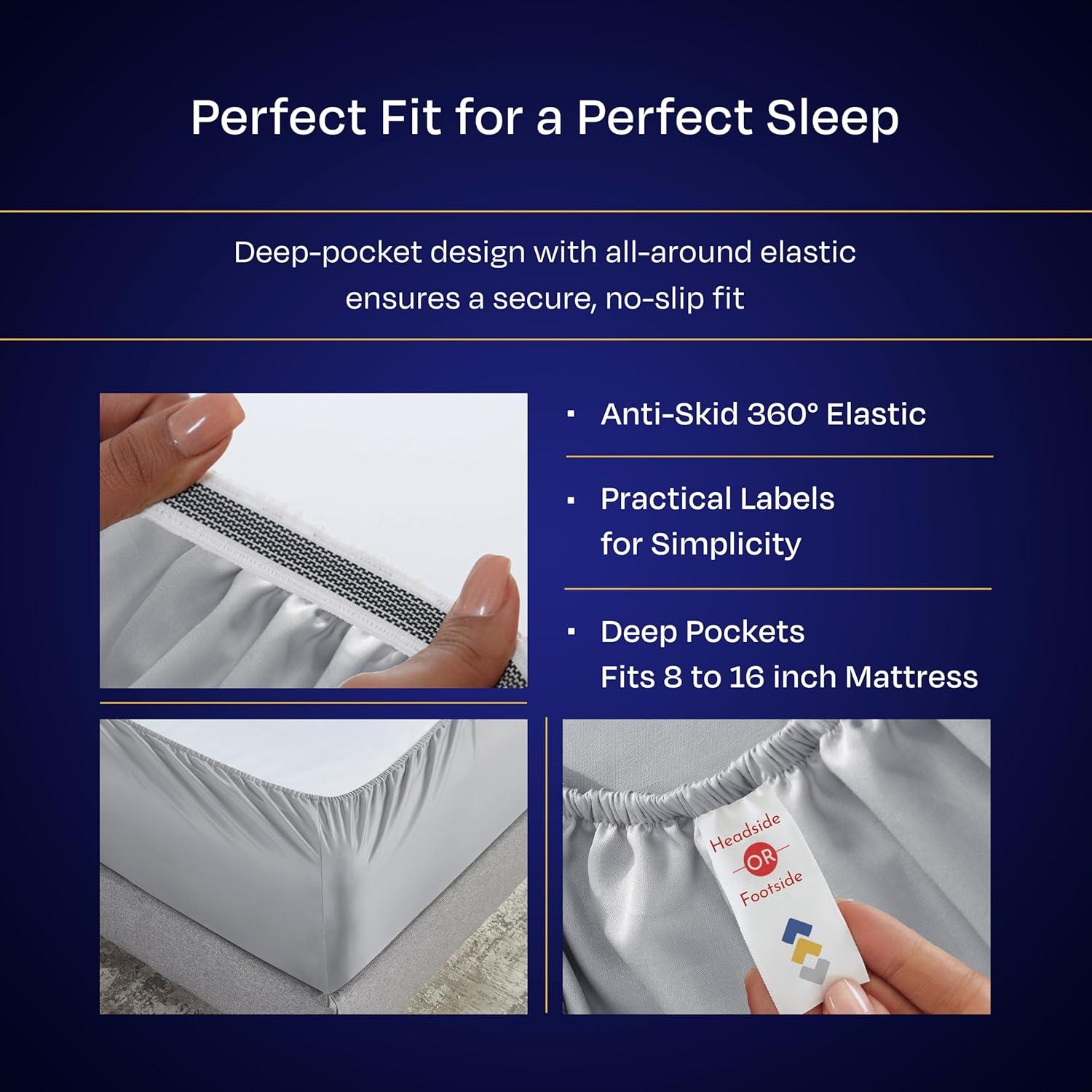 Sheet Set with a Great Fit: Our 4-piece high thread count cotton sheet set includes a top sheet (94″ W x 102″ L), a deep pocket bottom fitted sheet (60″ W x 80″ L) for mattresses 8 to 16 inches deep, and two standard/queen size pillowcases (21″ W x 32″ L). Fitted sheet features all-round elastic with deep pockets for a snug fit, ensuring it won't loosen or bunch up, with head/foot side indicators to make bed-making a breeze.