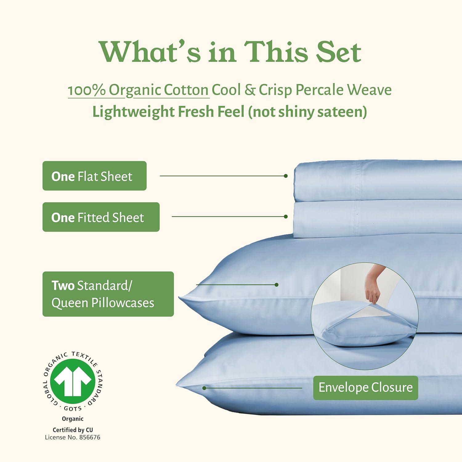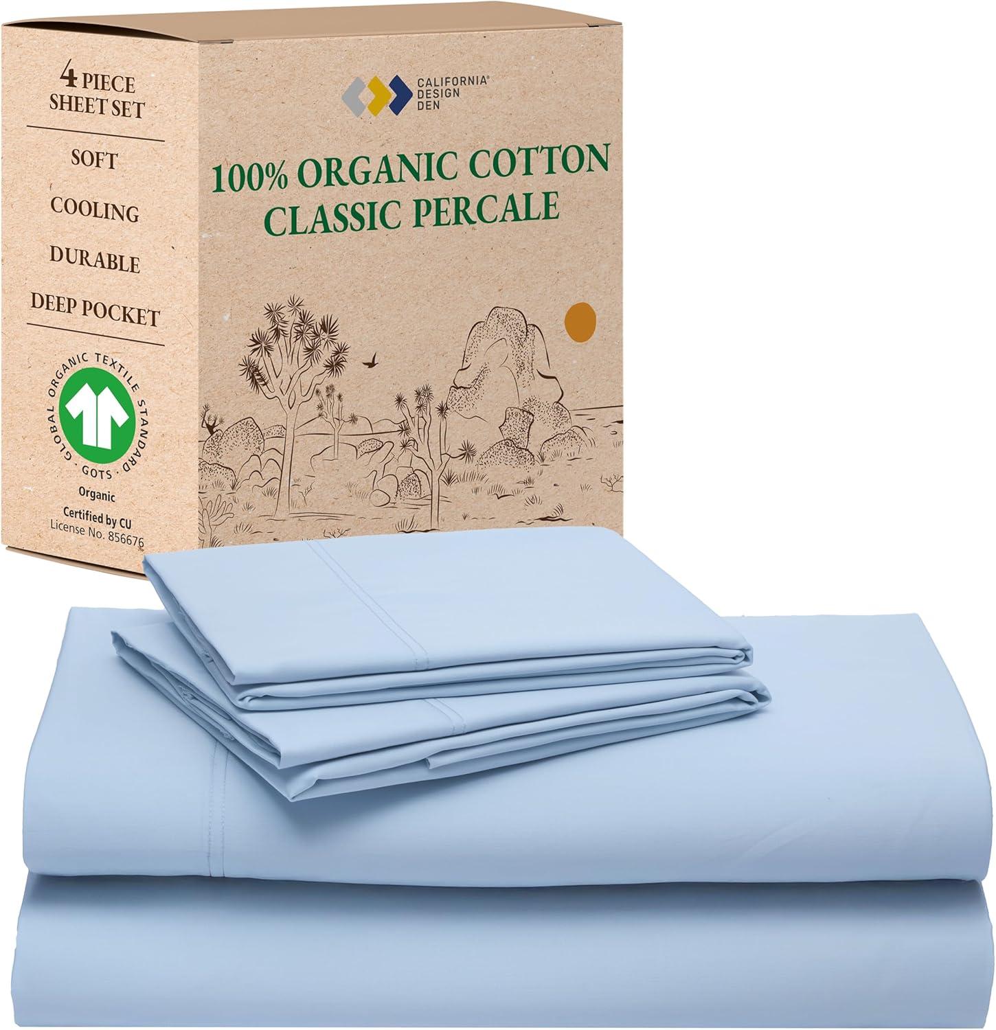 California Design Den Queen Sheet Set - Soft 100% Organic Cotton Sheets with Deep Pockets, Crisp Percale, Breathable and Durable Bedding Set - White(05 - Light Blue)