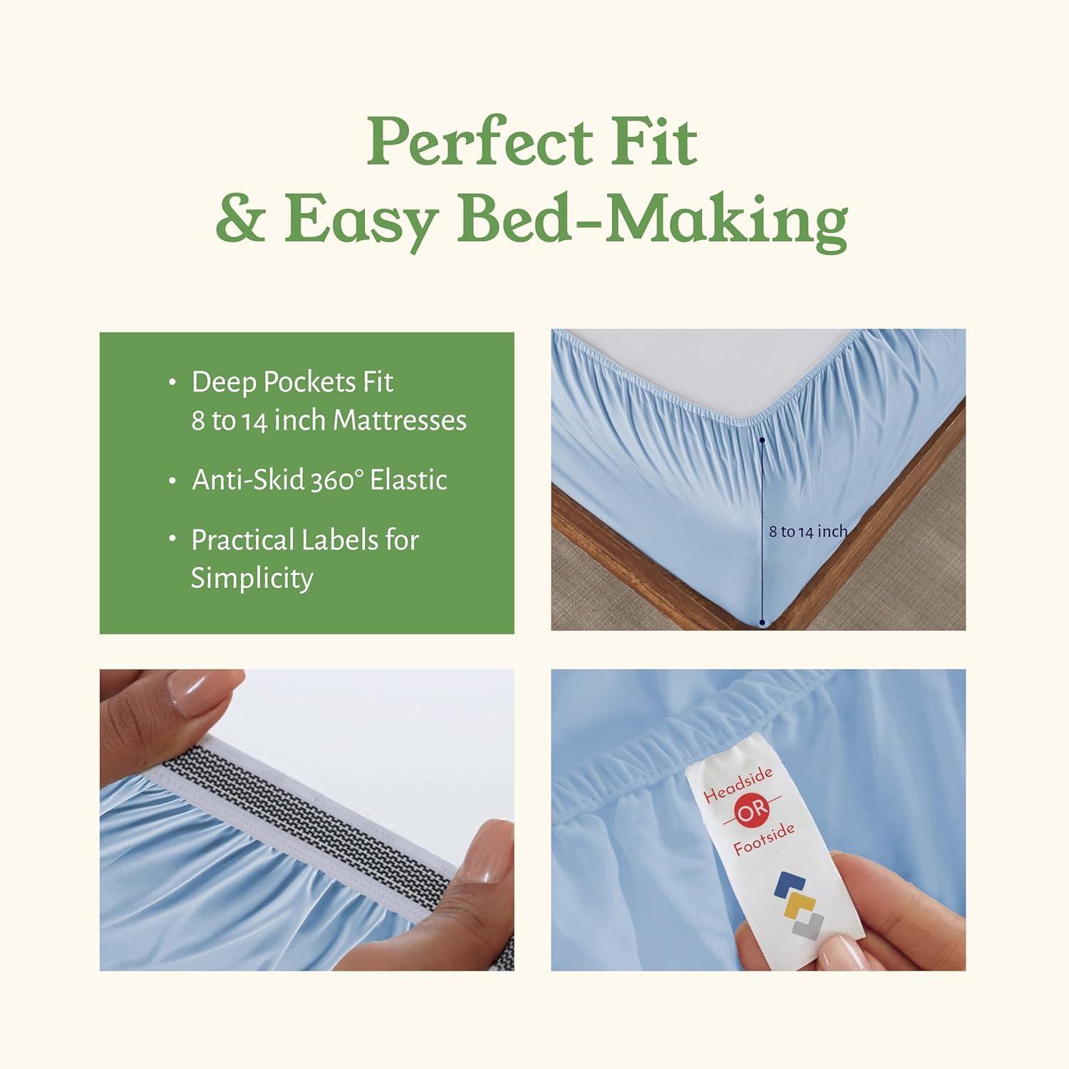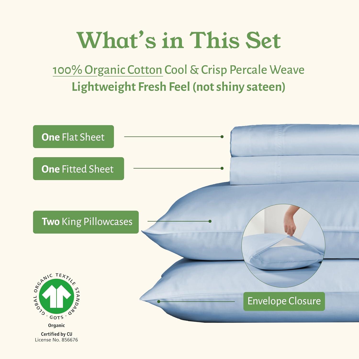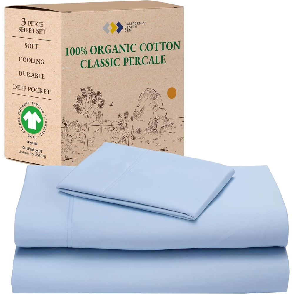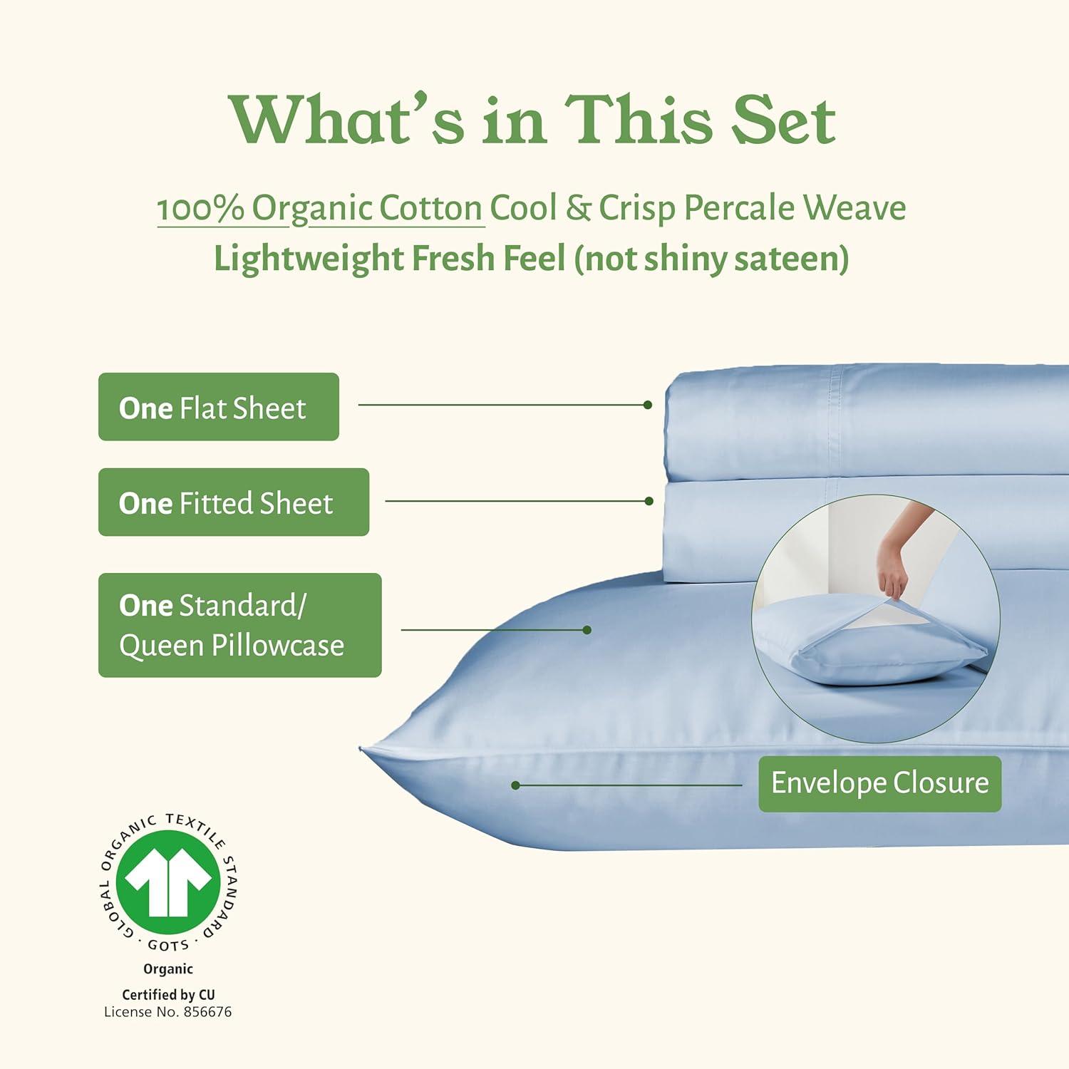 California Design Den Queen Sheet Set – Soft 100% Organic Cotton Sheets with Deep Pockets, Crisp Percale, Breathable and Durable Bedding Set – White(05 – Light Blue)