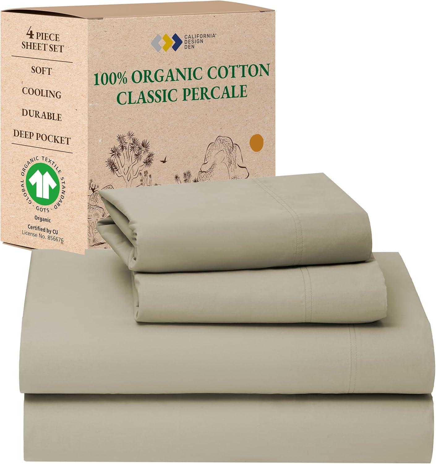California Design Den Queen Sheet Set – Soft 100% Organic Cotton Sheets with Deep Pockets, Crisp Percale, Breathable and Durable Bedding Set – White(13 – Warm Taupe)