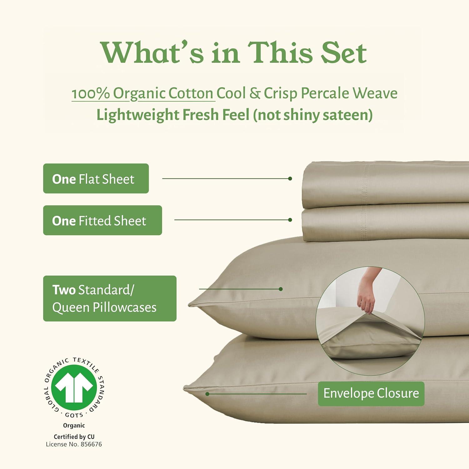 California Design Den Queen Sheet Set - Soft 100% Organic Cotton Sheets with Deep Pockets, Crisp Percale, Breathable and Durable Bedding Set - White(13 - Warm Taupe)