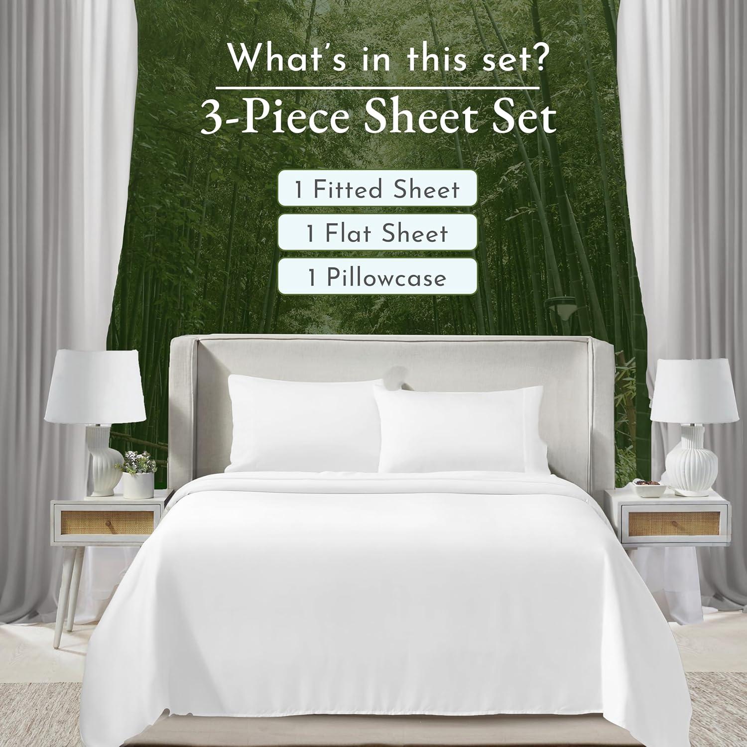 California Design Den Rayon from Bamboo Sheets Queen Size Bed Set - Luxury Cooling Sheets with Deep Pockets for a Snug Fit, Durable Silk-Like Bedding Set - White(Bright White)