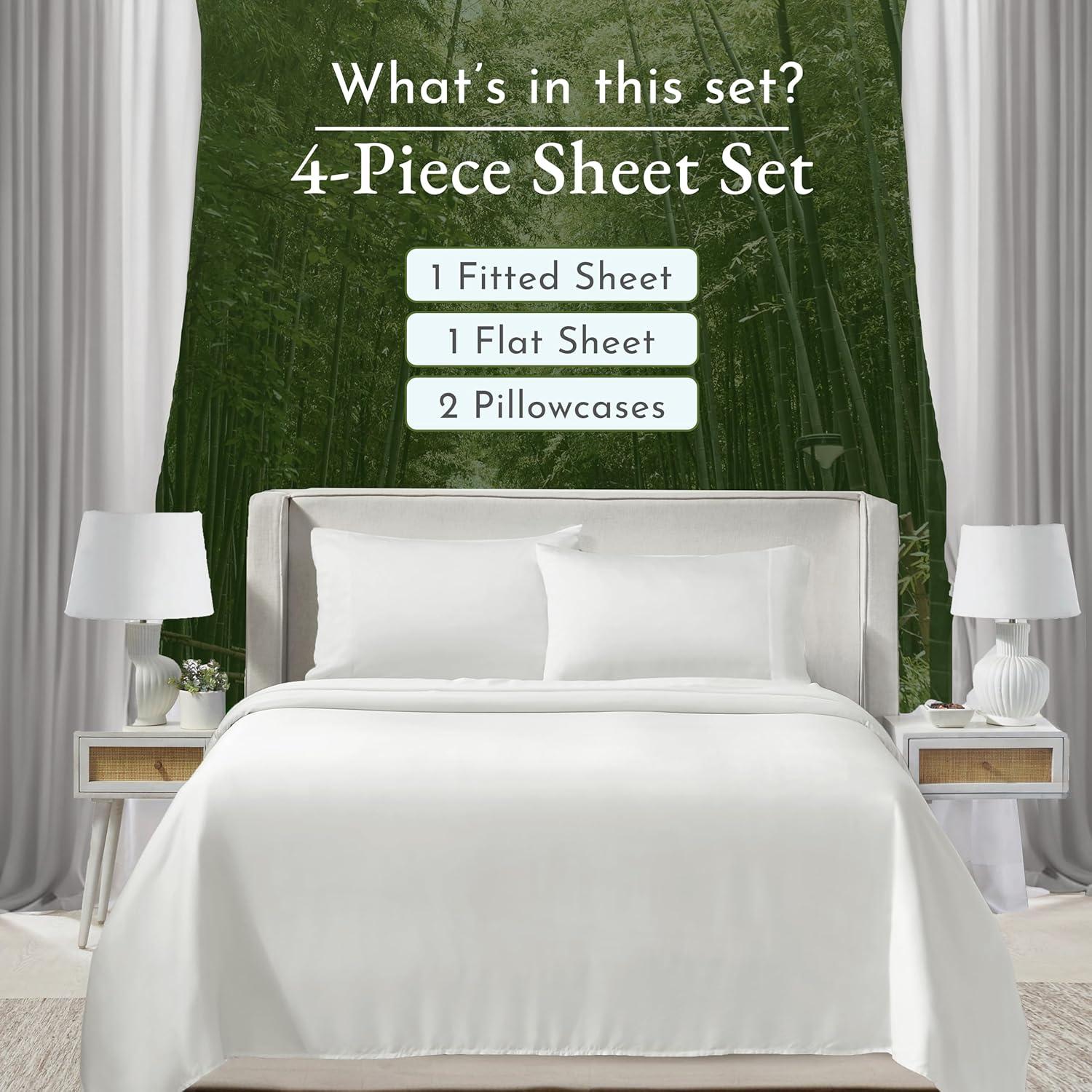 Durable & Easy to Care: With its ideal weight, this white sheets queen set withstands pilling, shrinkage, and fading, while maintaining luxurious softness and smooth drape, even after countless washes. This rayon from bamboo sheet set is easy to care for. Toss it in the washer and dryer, and enjoy the feeling of freshly laundered luxury every day.