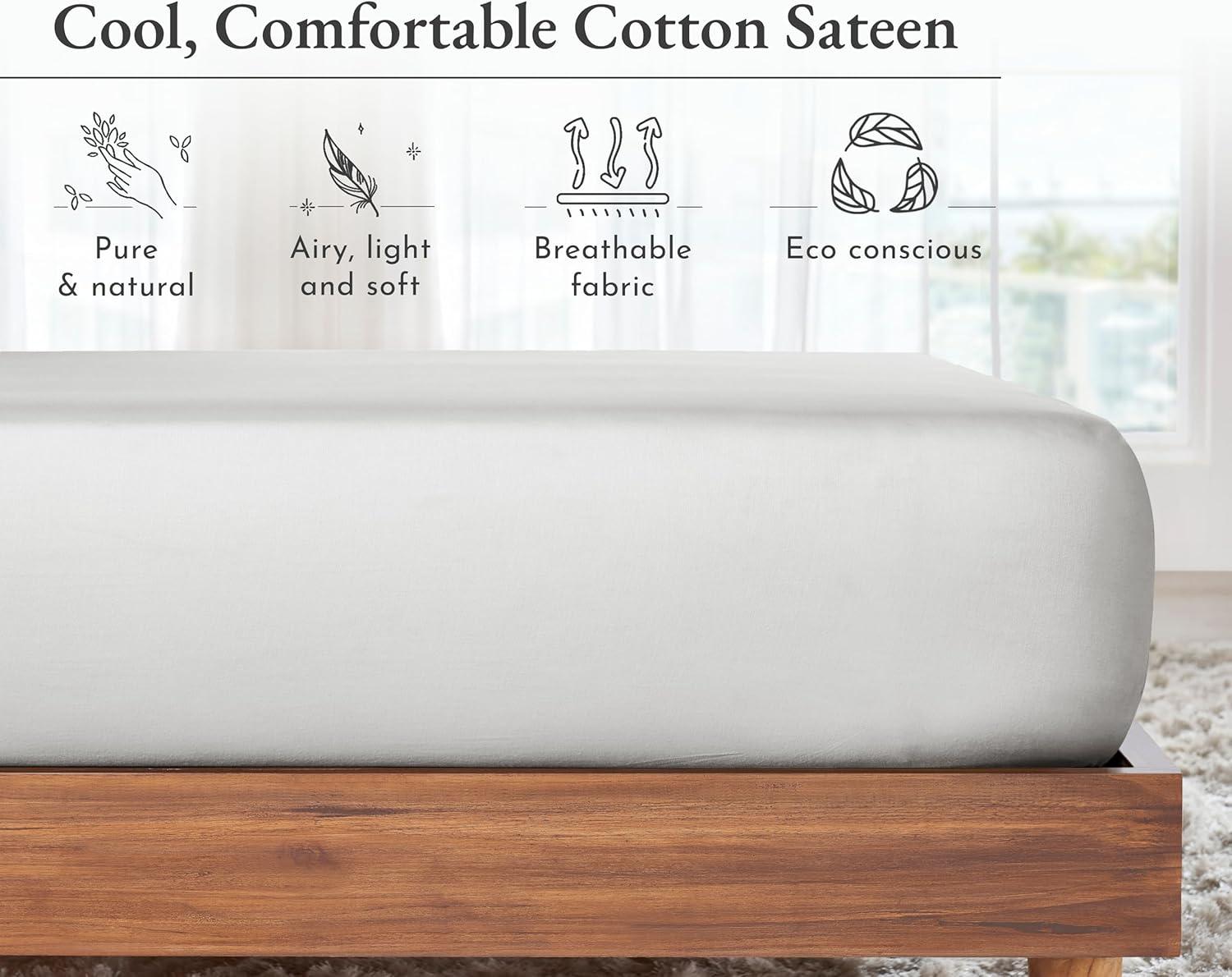 BREATHABLE AND COOL: Made from 100% cotton sateen fabric, our fitted sheet is highly breathable, allowing air to circulate and keeping you cool and comfortable all night long. It's perfect for any season.