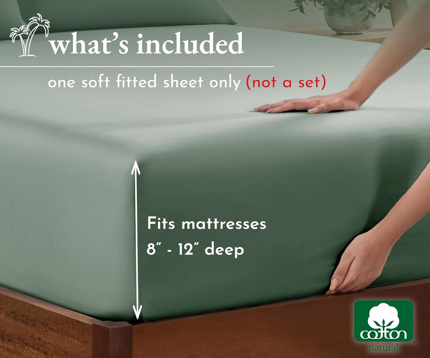 California Design Den Soft 100% Cotton Full Fitted Sheet Only Deep Pocket, Durable Sateen, All-Around Elastic, Head/Foot Side Indicators, Full Size Fitted Sheet Cotton (Blue Hydrangea)(13 - Sage Green - Dark)