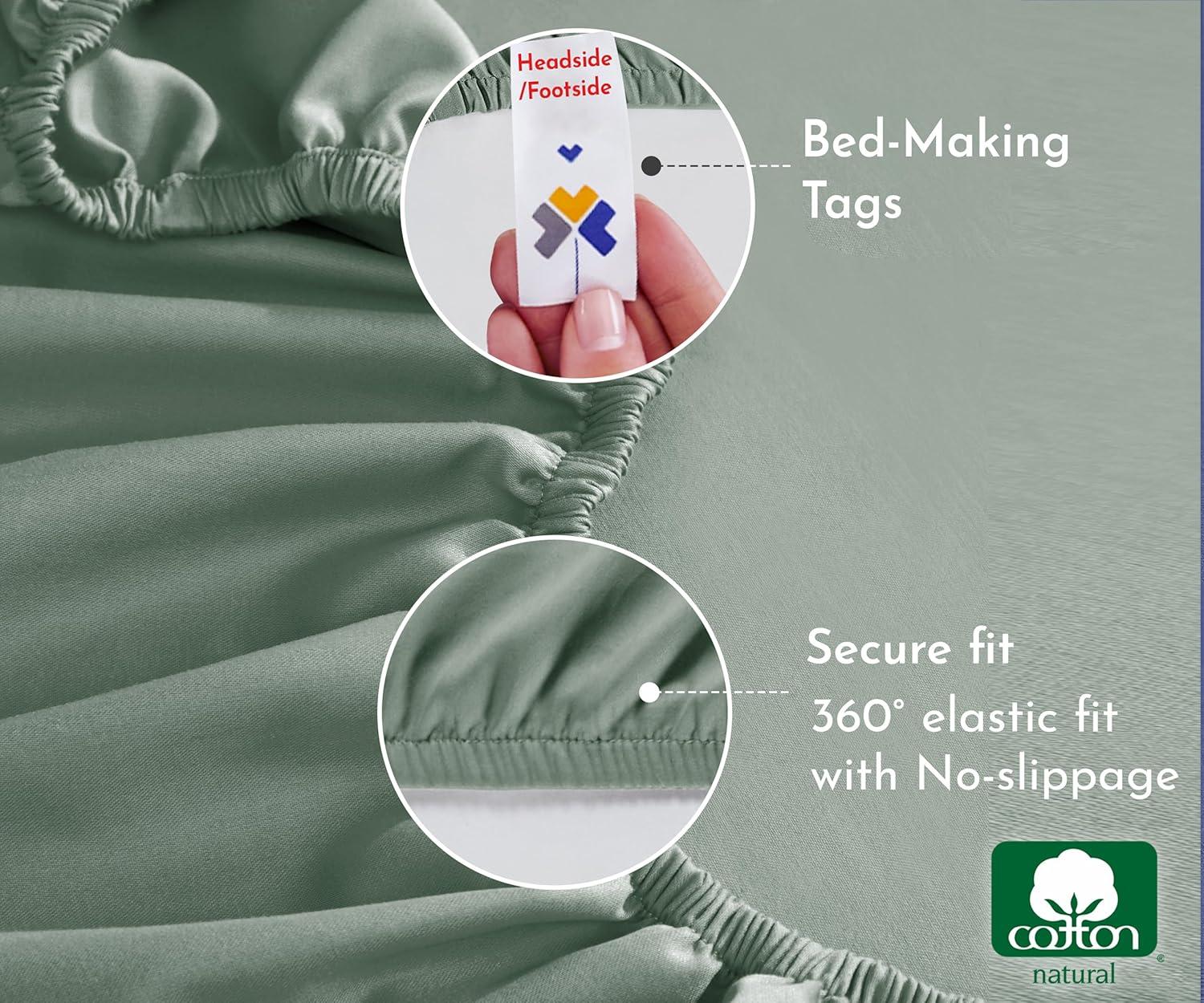 imageCalifornia Design Den Soft 100 Cotton Full Fitted Sheet Only Deep Pocket Durable Sateen AllAround Elastic HeadFoot Side Indicators Full Size Fitted Sheet Cotton Blue Hydrangea13  Sage Green  Dark