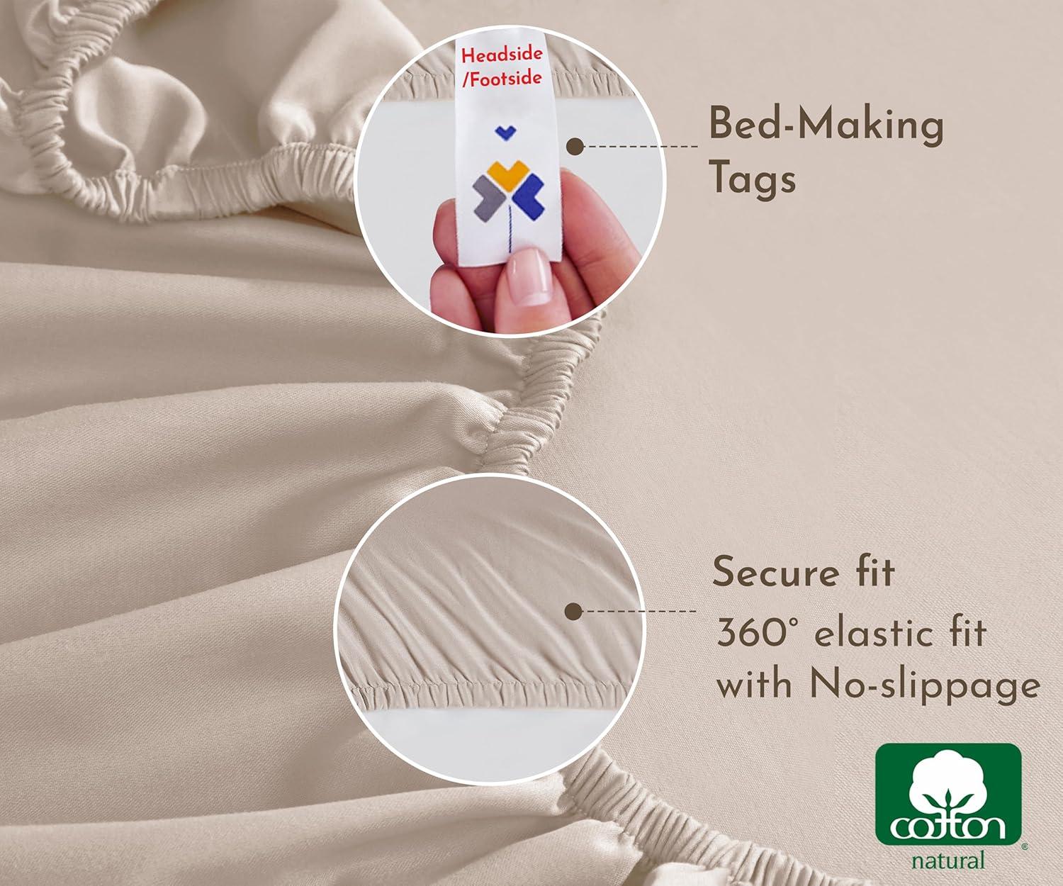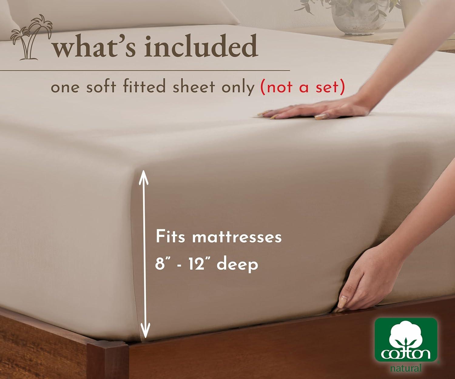California Design Den Soft 100% Cotton Full Fitted Sheet Only Deep Pocket, Durable Sateen, All-Around Elastic, Head/Foot Side Indicators, Full Size Fitted Sheet Cotton (Blue Hydrangea)(19 - Beige (Warm Taupe))