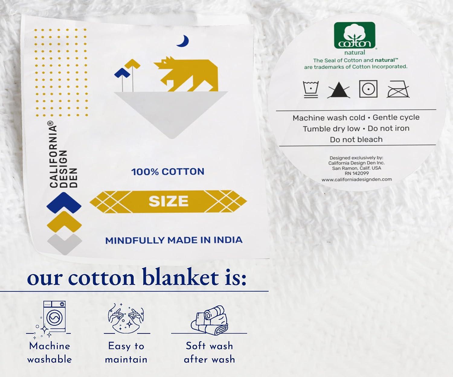 SATISFACTION GURANTEED – California Design Den cotton blankets are eligible for Amazon’s 30 days return & refund, no questions asked and backed by a risk-free Lifetime Guarantee against defects in materials and craftsmanship.