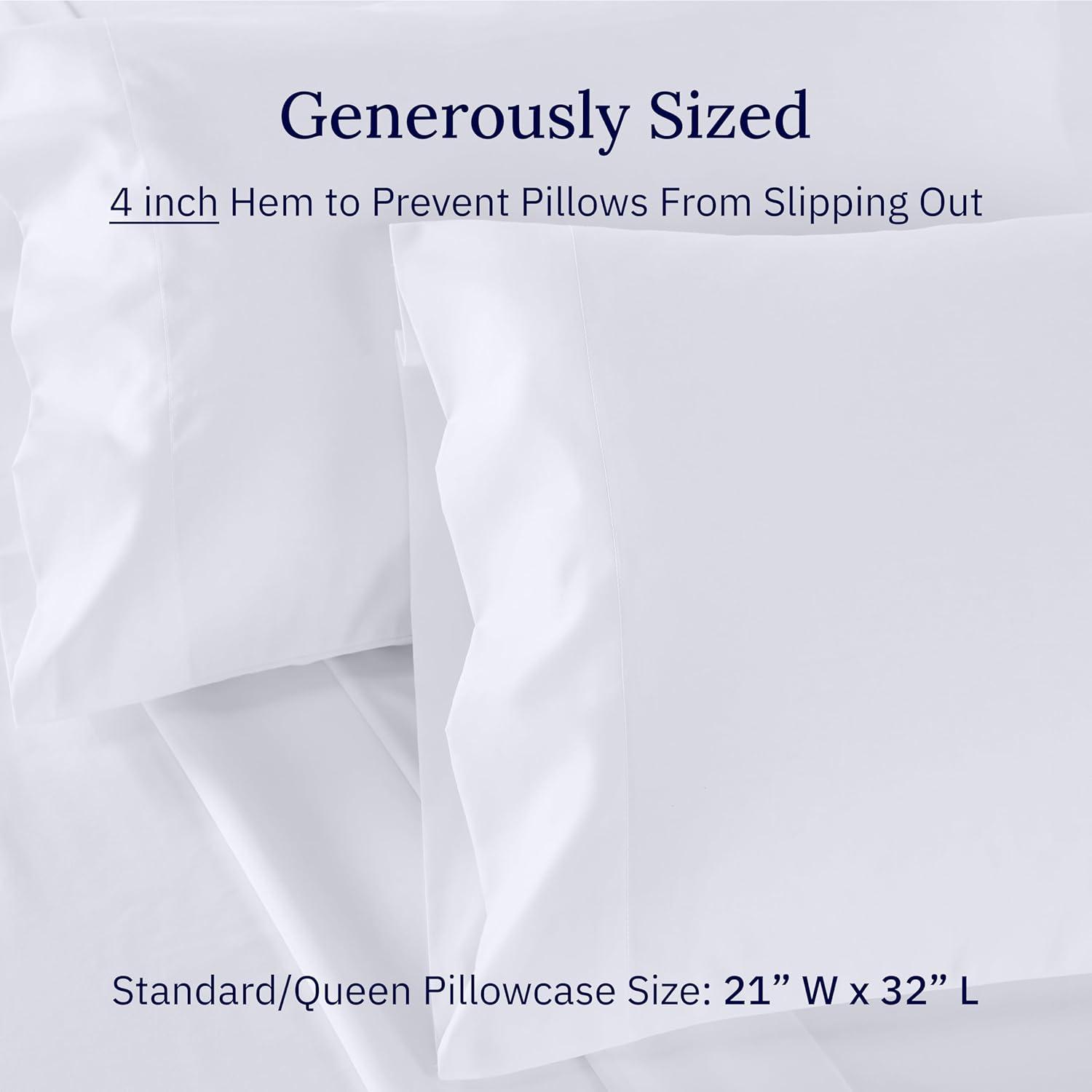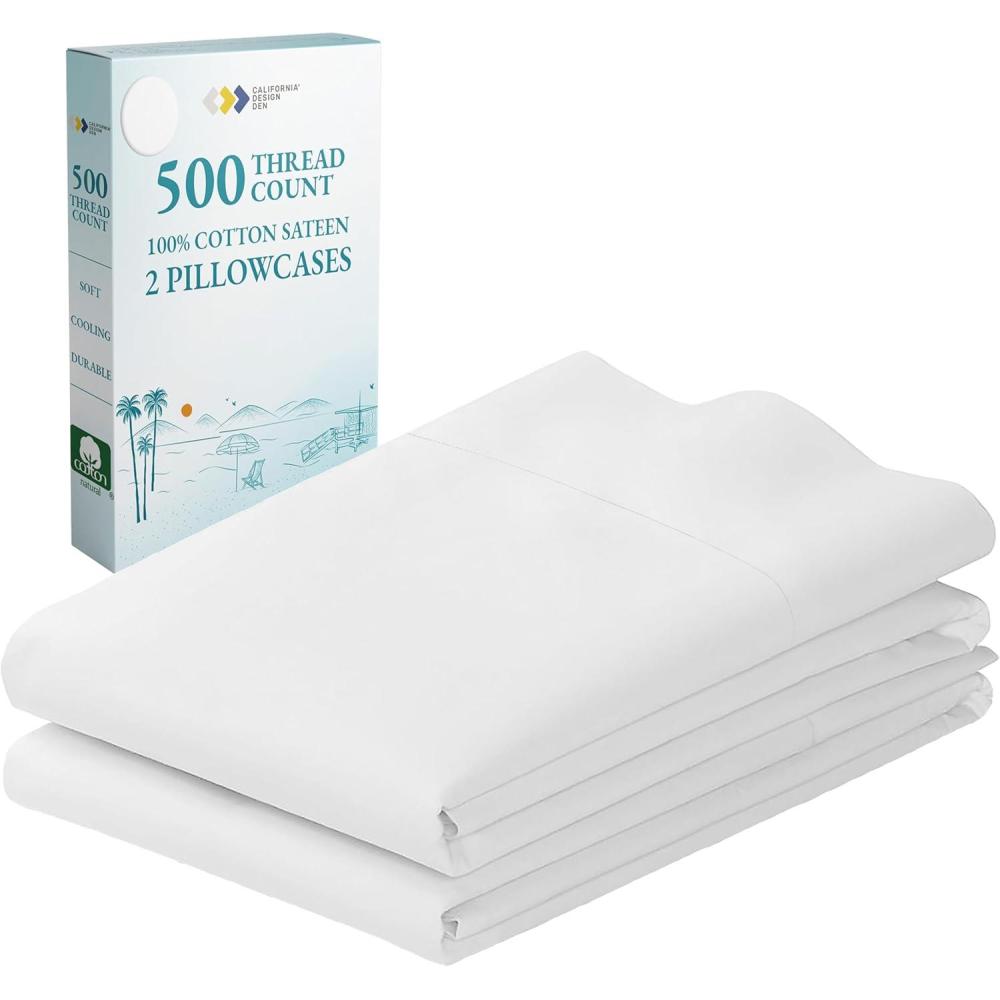 CALIFORNIA DESIGN DEN Soft & Silky 500 Thread Count 100% Cotton is Cool & Smooth, White Pillowcases Queen Size Fits Standard & Queen Pillows (Pure White)(01 - White)