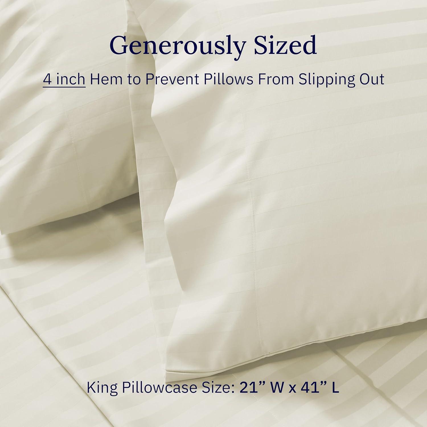 CALIFORNIA DESIGN DEN Soft & Silky 500 Thread Count 100% Cotton is Cool & Smooth, White Pillowcases Queen Size Fits Standard & Queen Pillows (Pure White)(04 - Ivory Striped)